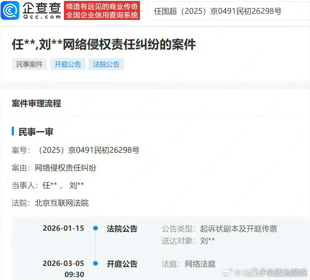 任嘉伦新增网络维权案件,支持国超维权