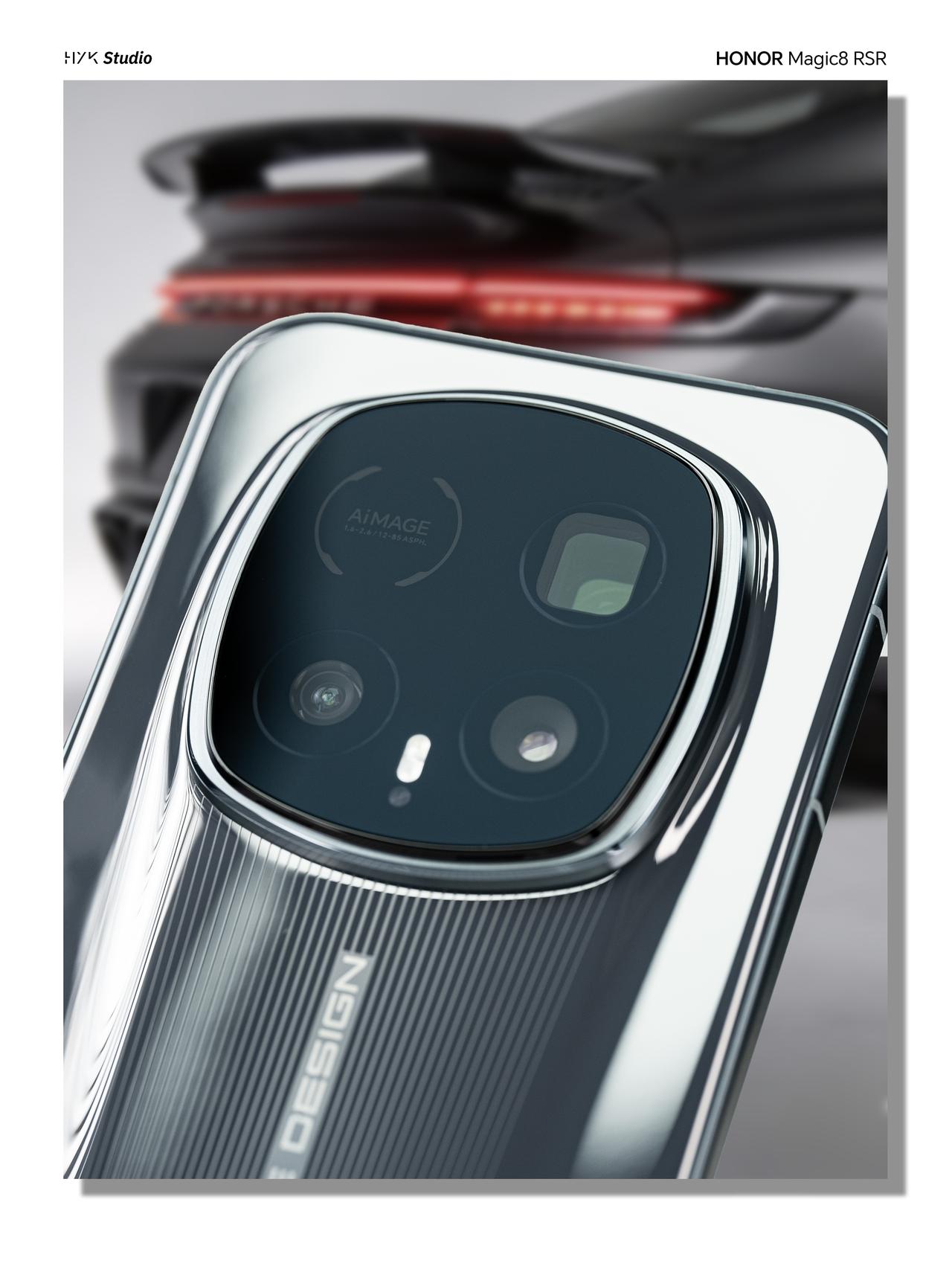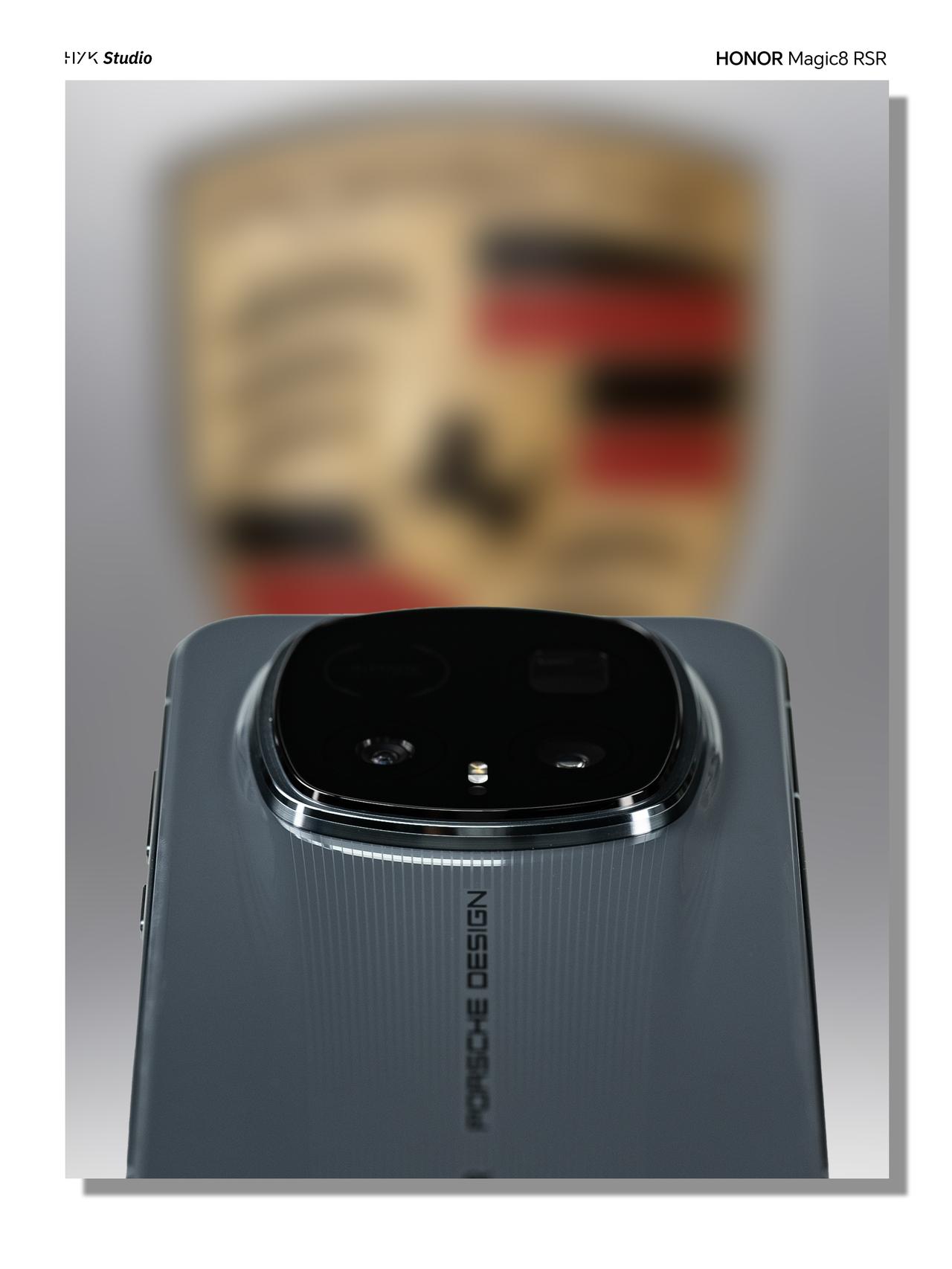 HYK图赏|荣耀Magic8 RSR保时捷 机身背部依旧贯穿标志的「流光飞线」,在光线下会有流影划过的效果。板岩灰搭配上曲面陶瓷背盖和等深四曲屏,看起来很高级。镜头模组从六边形布局变为了圆角矩形布局,并且融入了保时捷911大灯的设计,手感会更圆润些。不得不说,荣耀的RSR系列的质感一直都挺在线的。