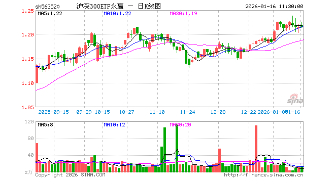 1月16日,截止午间收盘,沪深300ETF永赢(563520)跌0.08%,报1.214元,成交额1727.52万元。沪深300ETF永赢(563520)重仓股方面,宁德时代截止午盘跌0.21%,贵州茅台跌0.29%,中国平安跌1.41%,招商银行跌0.38%,紫金矿业跌0.78%,新易盛跌0.18%,中际旭创涨0.35%,美的集团涨0.18%,东方财富跌0.29%,长江电力跌0.89%。