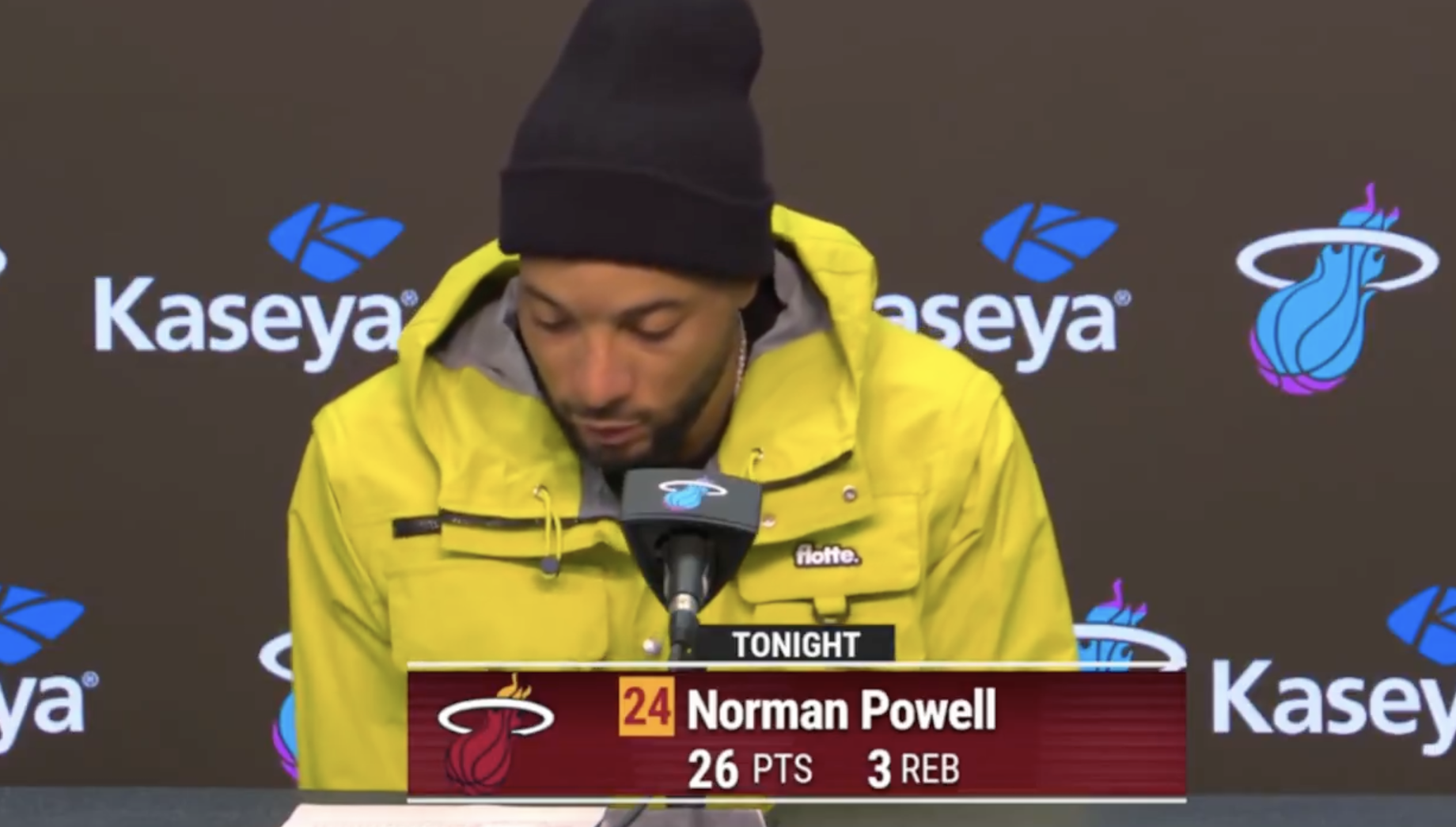 赛后热火球员诺曼-鲍威尔接受了记者采访,鲍威尔表示篮板球击溃了热火今晚的表现。