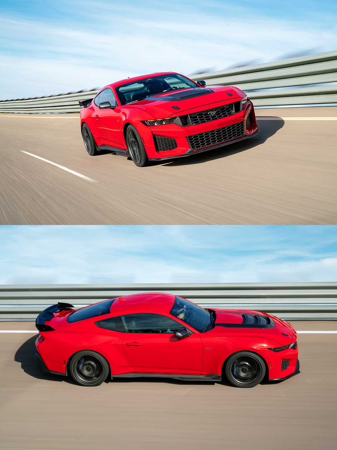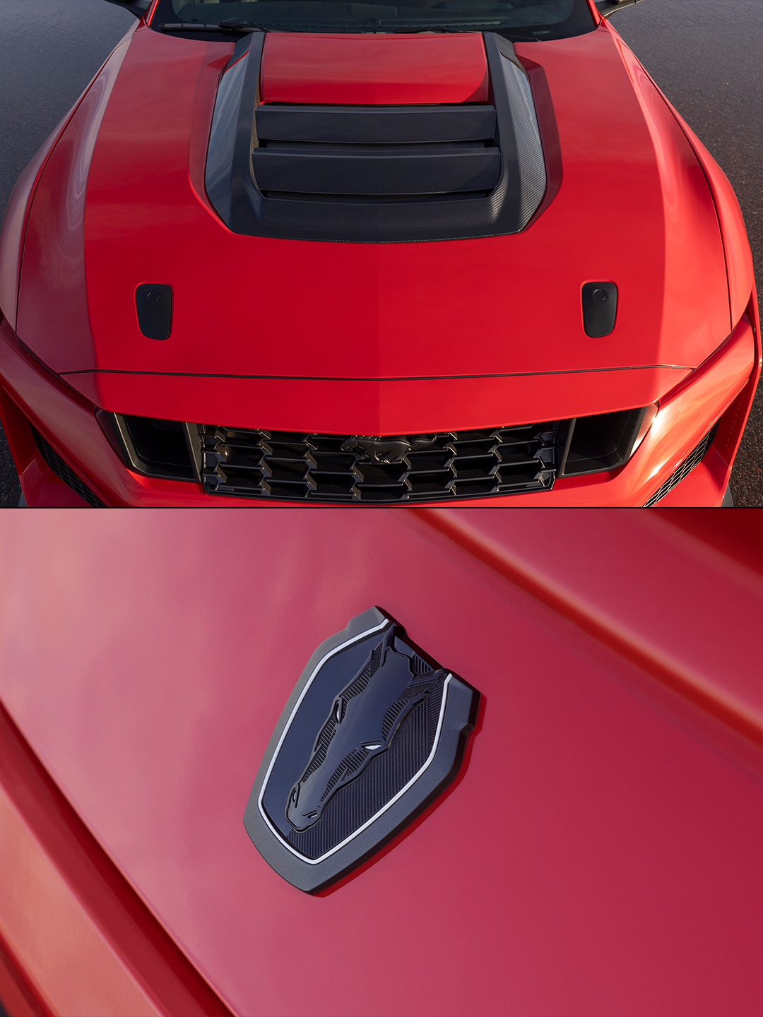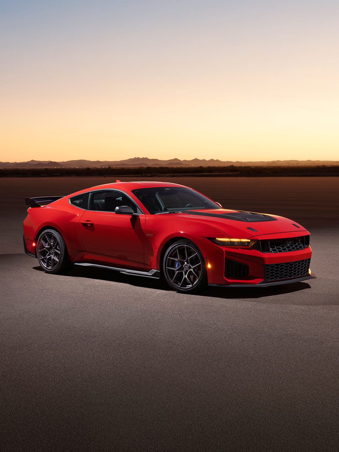 原来红牛庆祝福特百年的大制作里,维斯塔潘开的是这台车 史上最强最快“黑马”发布,Mustang Dark Horse SC版。SC意为机械增压,发动机本体为5.2L V8,匹配7速双离合。标配MaganeRide电磁减振器、镁合金塔顶拉杆。可选装赛道性能包,升级源自GTD的Brembo碳陶瓷制动系统、碳纤维轮圈等配置,共减重150磅(约68公斤)。汽场全开