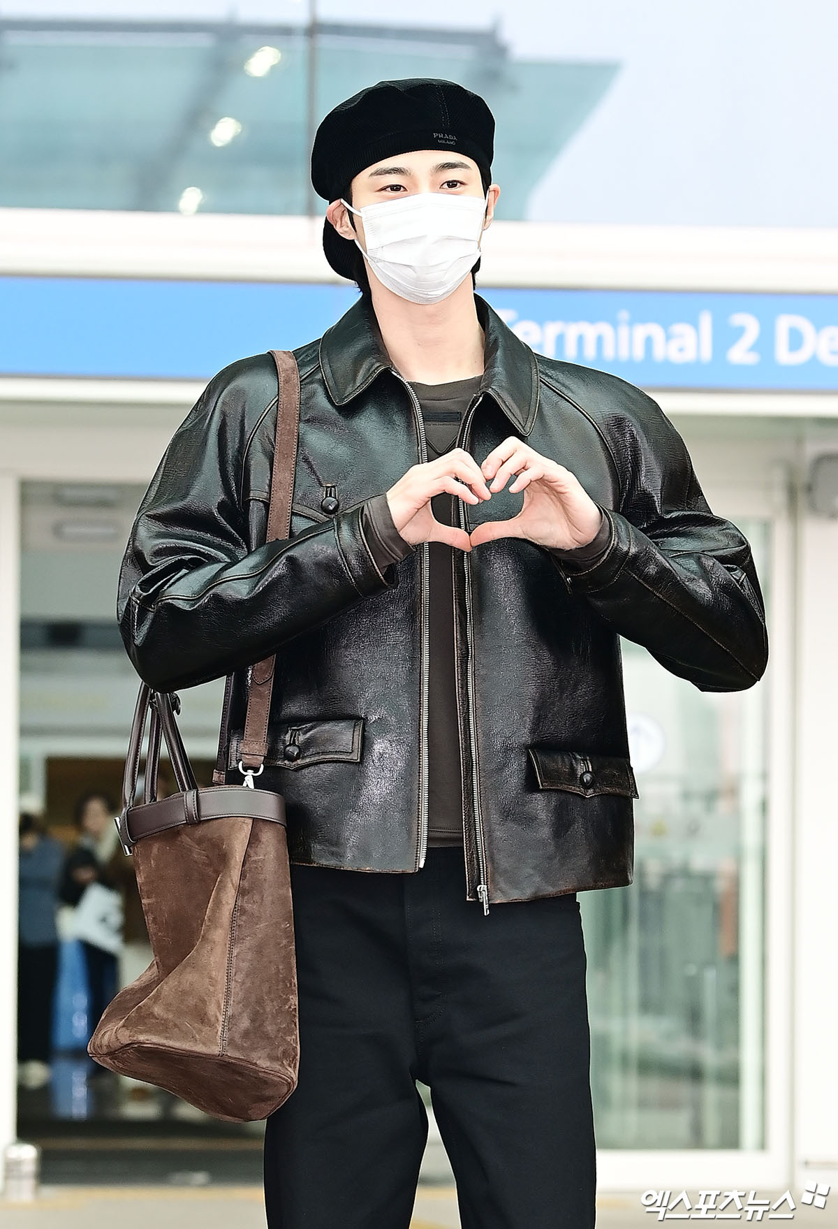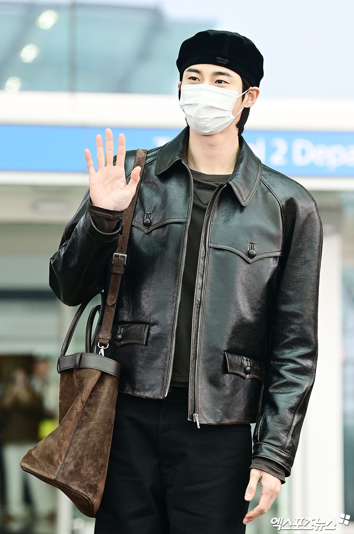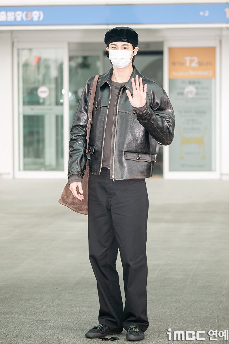 边佑锡 —— PRADA 2026秋冬男装大秀,启程米兰之旅,复古深棕皮衣外套搭