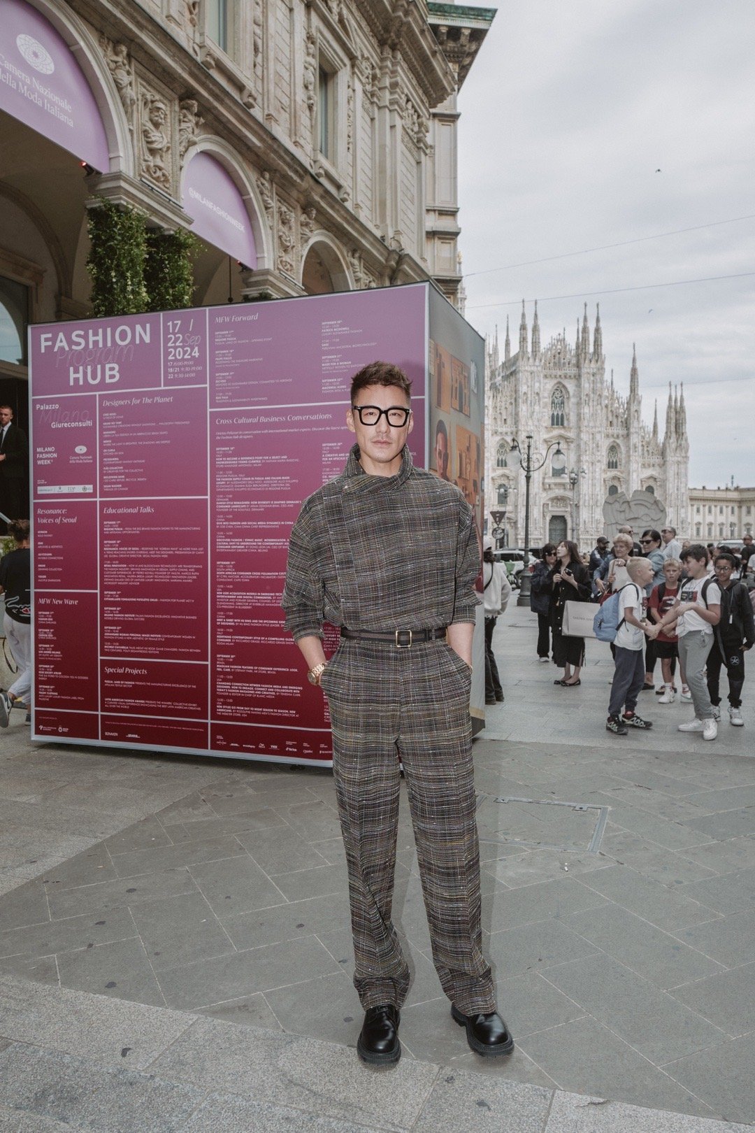 胡兵给阿布扎比上点东方震撼 胡兵这身是写给阿布扎比的一封东方情书。香云纱承载文化记忆,零浪费剪裁呼应时代精神——当他行走于沙漠,整片土地都成了东方美学的回音壁。