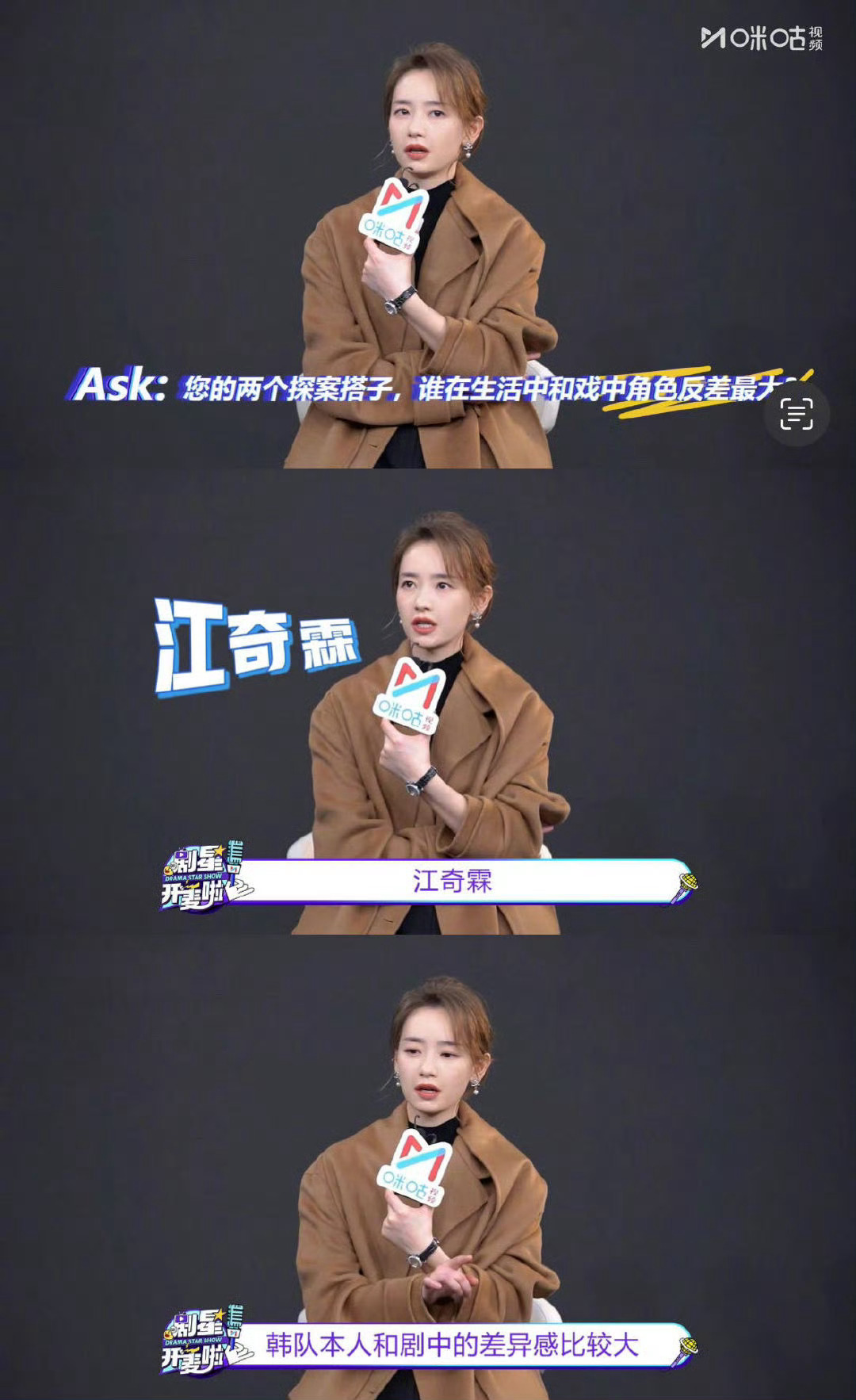 刘雅瑟说江奇霖反差巨大 刘雅瑟爆料江奇霖戏里戏外反差大,剧里是战斗力爆棚的铁血硬汉韩队,剧外是个把“保暖”刻进DNA的养生男孩,哈哈哈真没看出来~