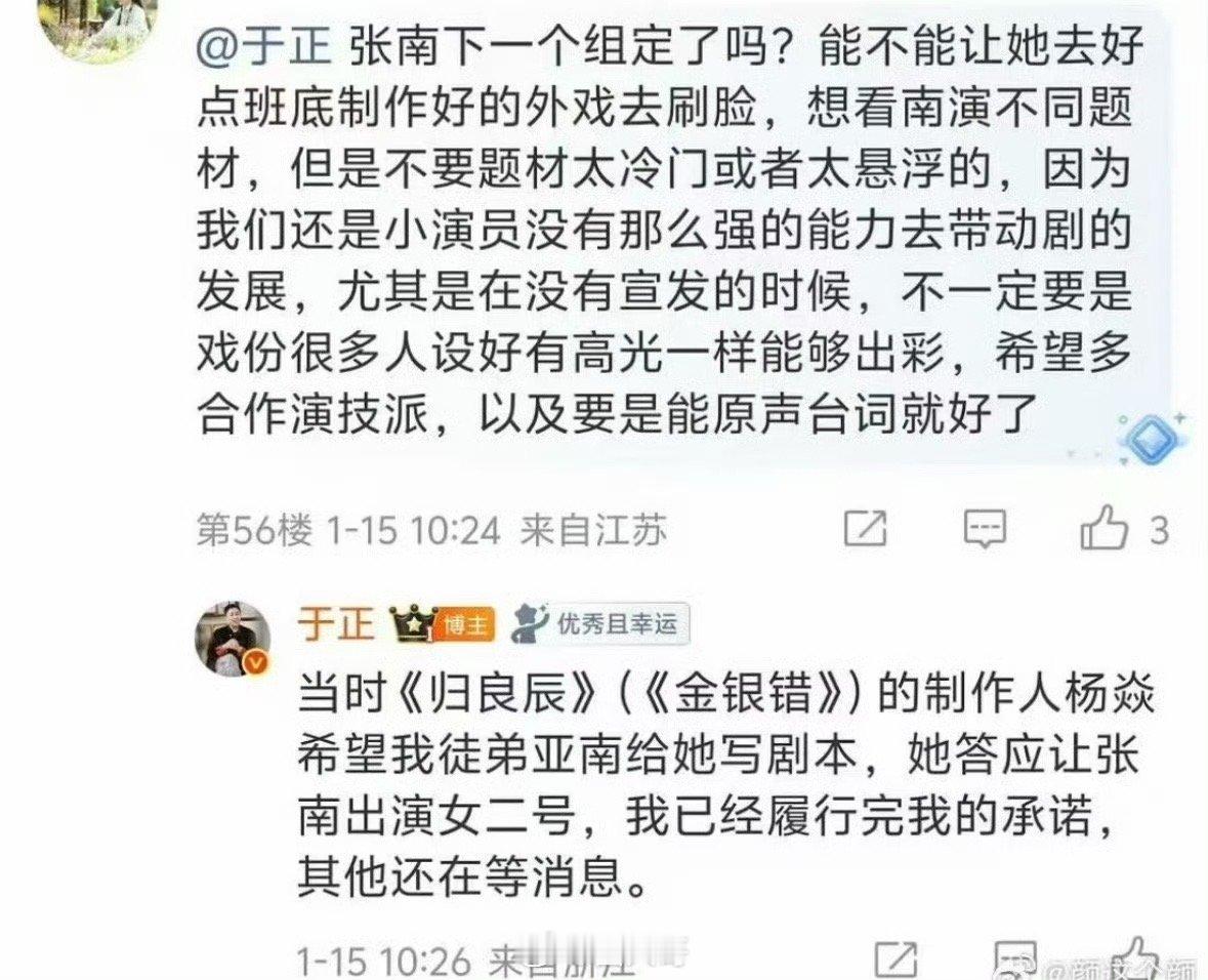 网传张南或演归良辰女二哇喔,该说不说于正也算是内娱好老板了吧!李昀锐、刘些宁主演的电视剧《归良辰》女二居然是《玉茗茶骨》的五小姐扮演者张南,于正还特意回应了这件事,那就坐等好消息吧!于正称张南出演归良辰女二