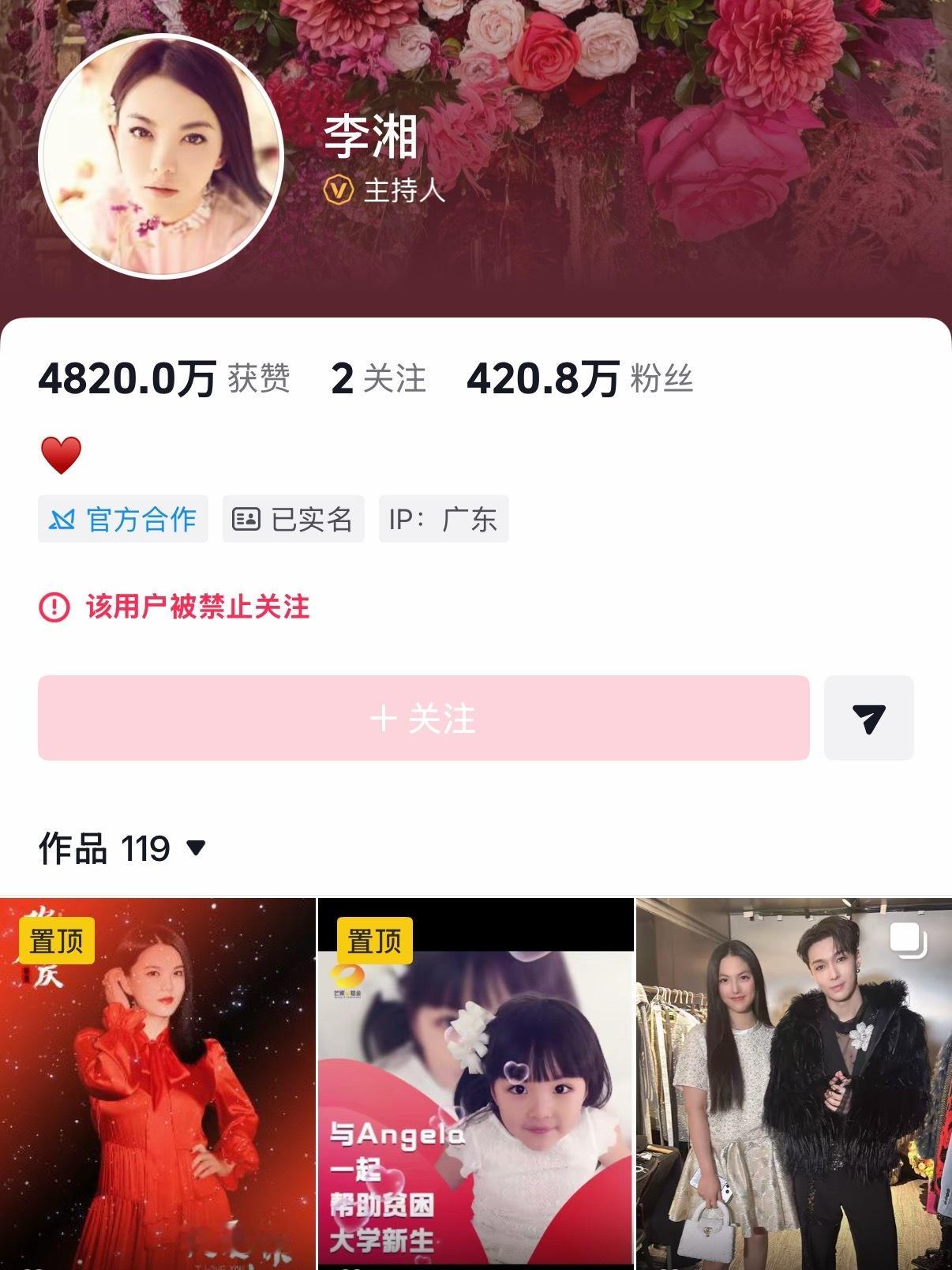 李湘全平台账号被禁止关注平台客服回应李湘被禁止关注封就封了,天天不是炫富就是炫富