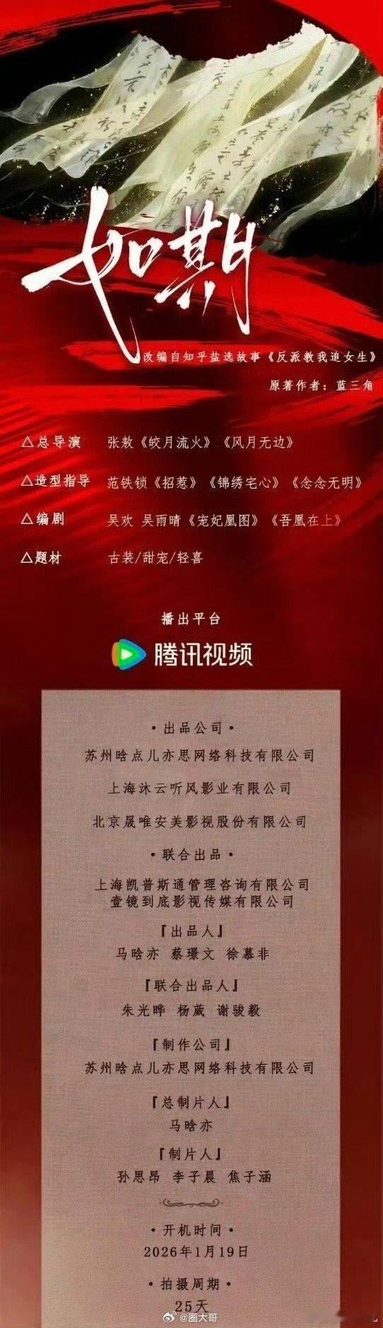 赵弈钦何蓝逗出演短剧如期赵弈钦、何蓝逗主演的短剧《如期》终于要来了啊,这也是两位的首次合作,就是说这也是腾讯的首部短剧,人设和剧情很是带感了,期待俊男美女的开机物料啦~短剧如期1月19号开机