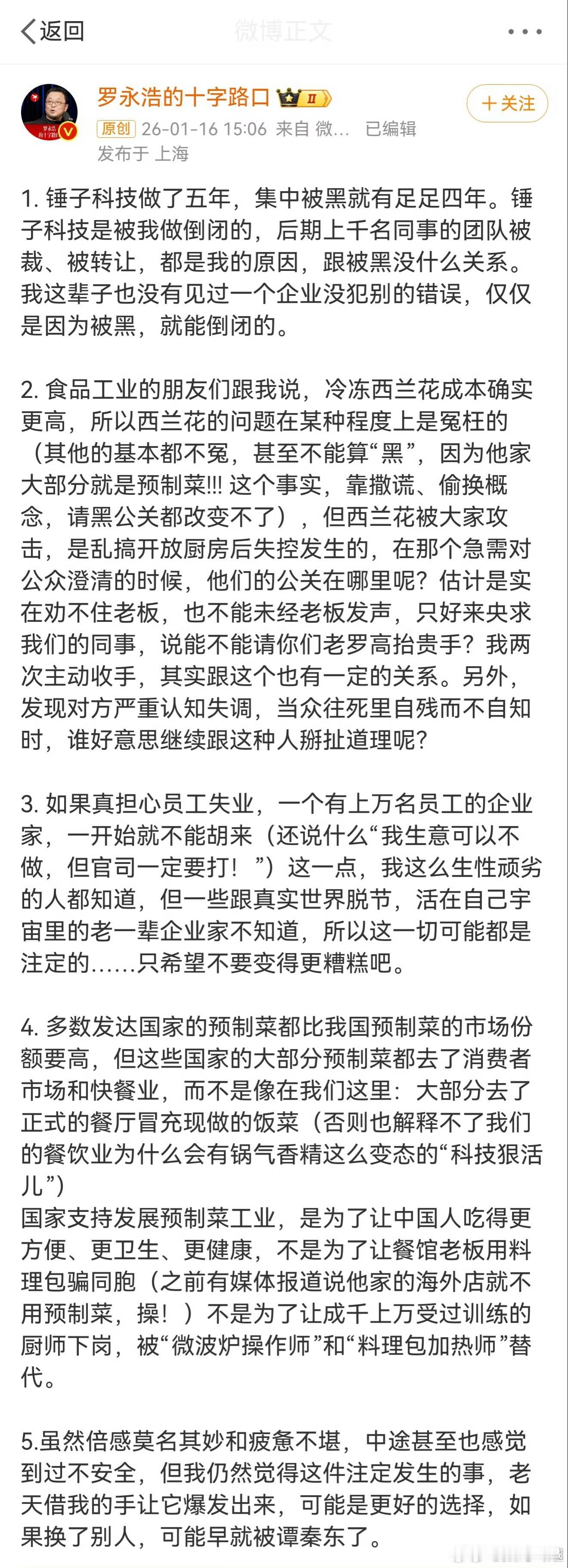 罗永浩回应西贝闭店抛开很多事不谈,单单是当时西贝开放厨房直播中的画面,就足以让人