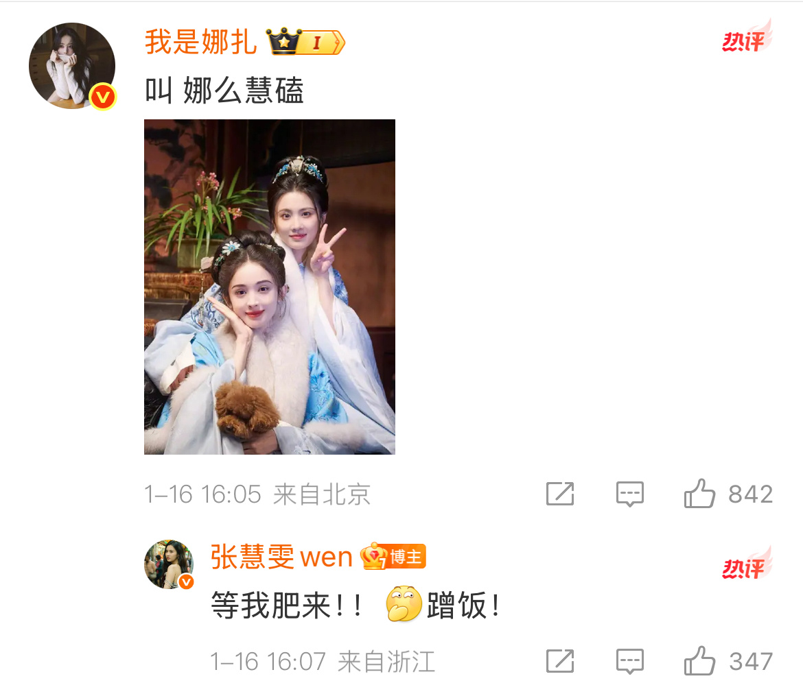 于正给张慧雯娜扎角色起cp名:宝贝亲(卿)我于正给娜扎张慧雯起的cp名