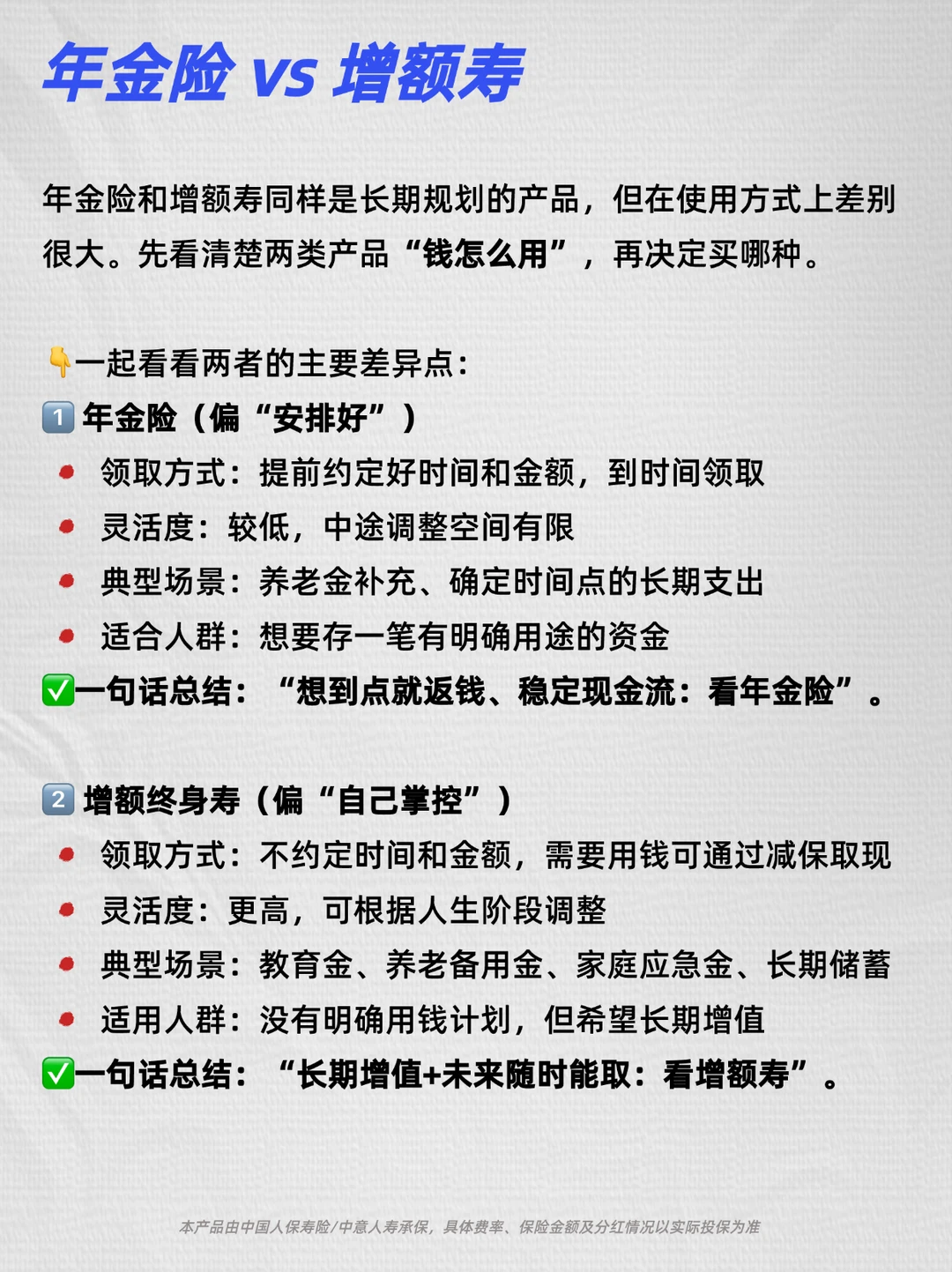 我先把结论放前面:你如果更在意“到了某个年龄开始按月/按年返钱,追求持续现金流”, 优先看年金险。你如果更在意“未来能不能灵活取钱、像一个长期小金库一样慢慢变大”,增额寿更像你的菜;