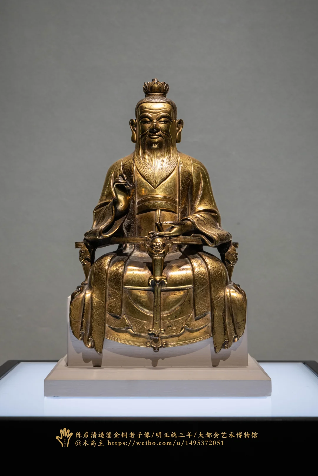陈彦清造鎏金铜老子像,明正统三年,1438年 大都会艺术博物馆