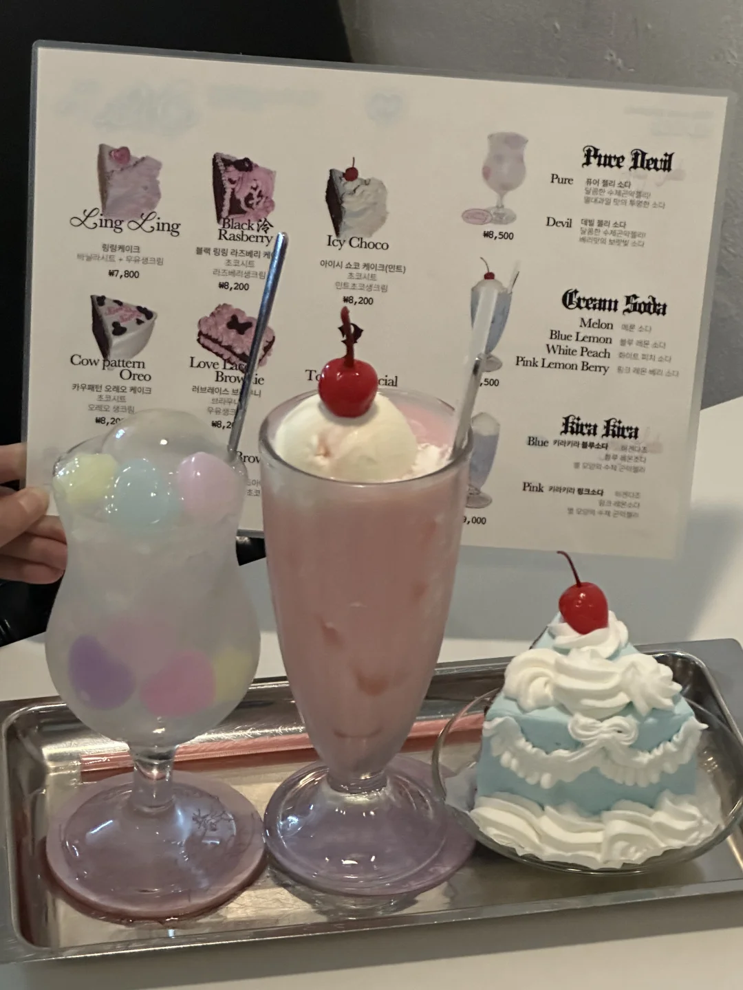 周一休息,一点开门,y2k风格韩女很多 店内就餐需要一人一杯饮品,生日🎂蛋糕可提前ins预定 饮品一般蛋糕好吃🍰均8000韩币