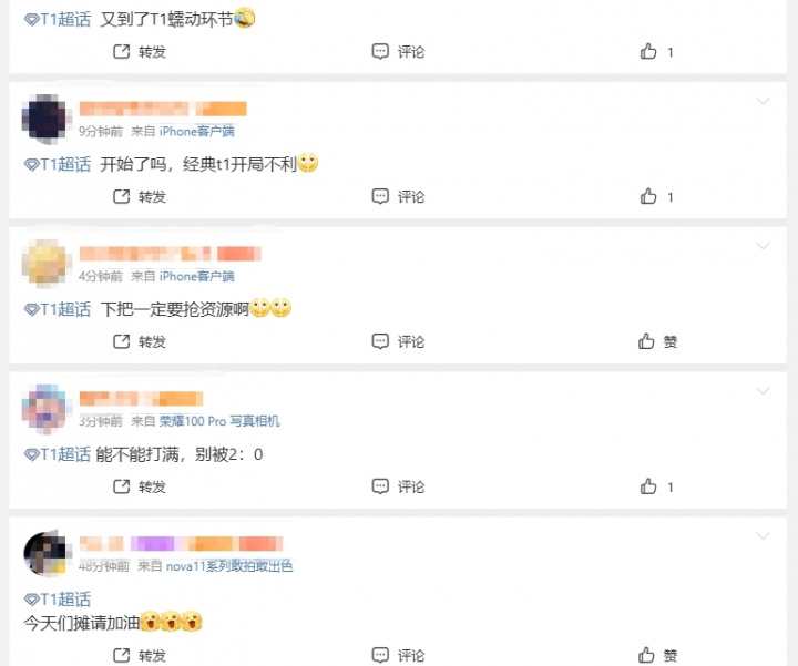T1超话粉丝锐评首局不敌HLE:经典t1开局不利 又到了T1蠕动环节