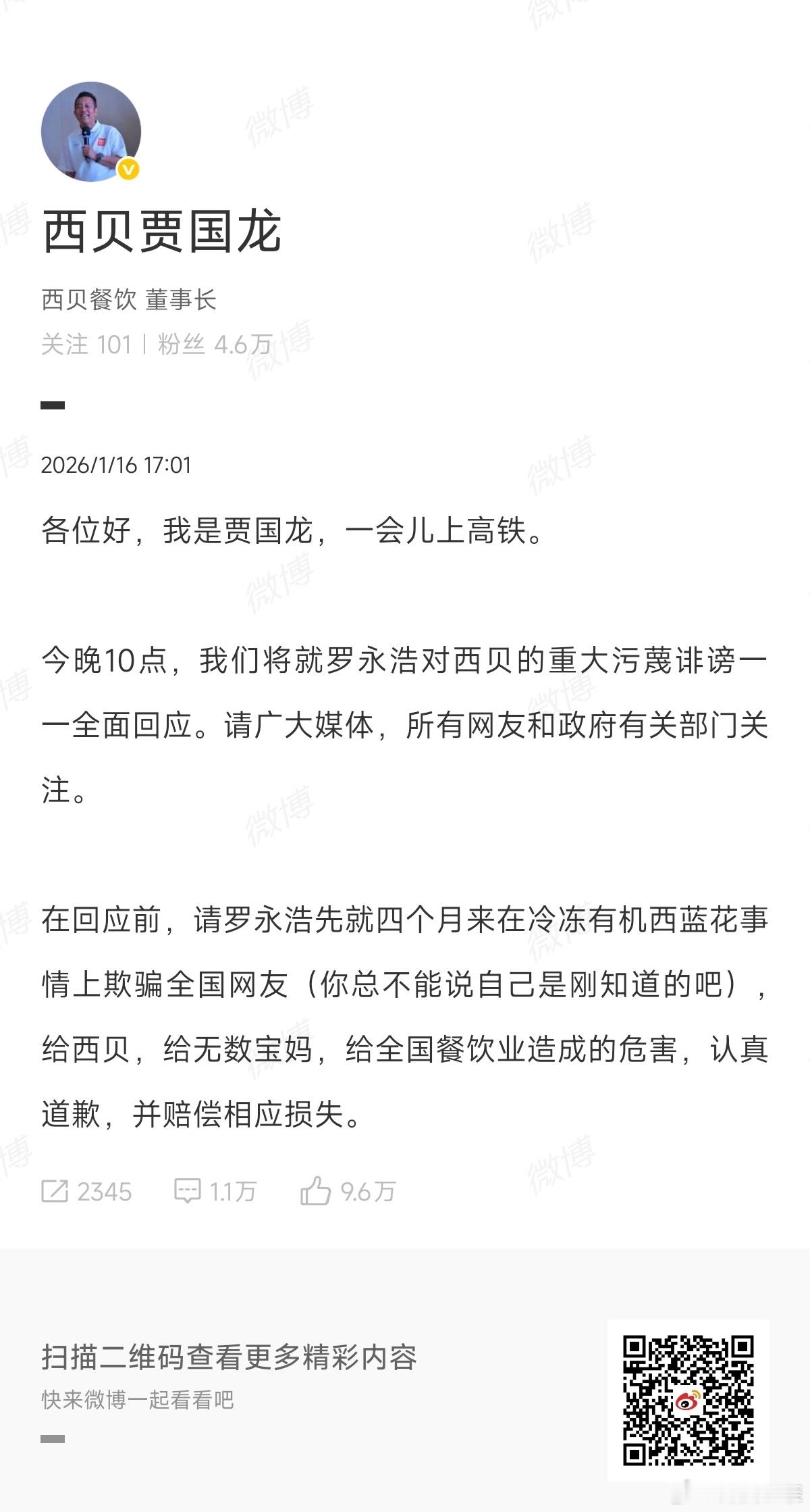 贾国龙今晚10点全面回应 2026版“优酷见”!其实感觉这事都已经过去了呀,但很显然有人咽不下这口气,感觉这波有点要拼个鱼死网破的意思了,就是反正已经关了几百家店,不折腾到把所有店全关了不算完。有些时候认识不到自己的错误,真的是一个很严重的问题,再加上身边没有敢说真话的人,这问题就更严重了,所以今晚10点准备看热闹了各位!