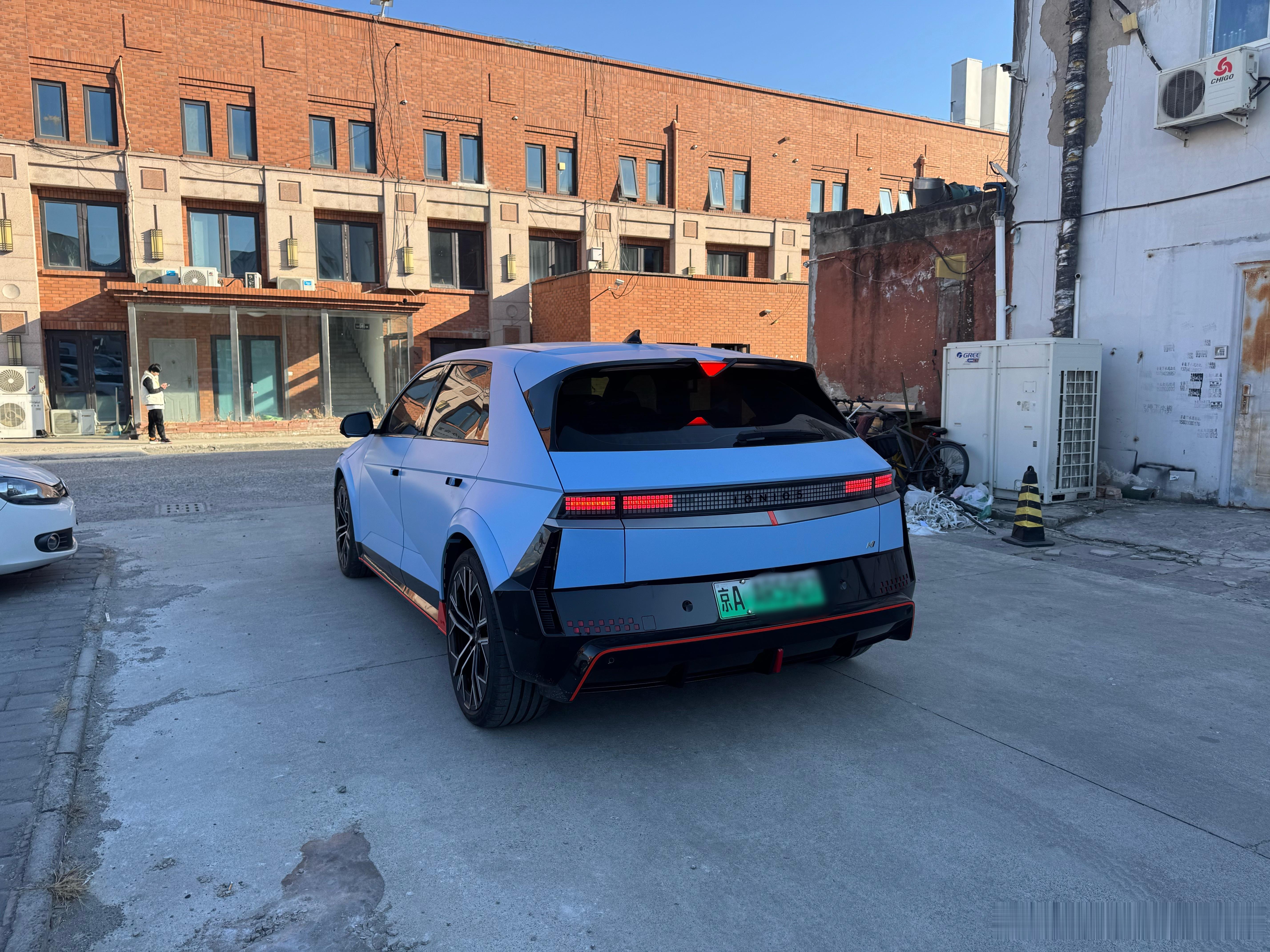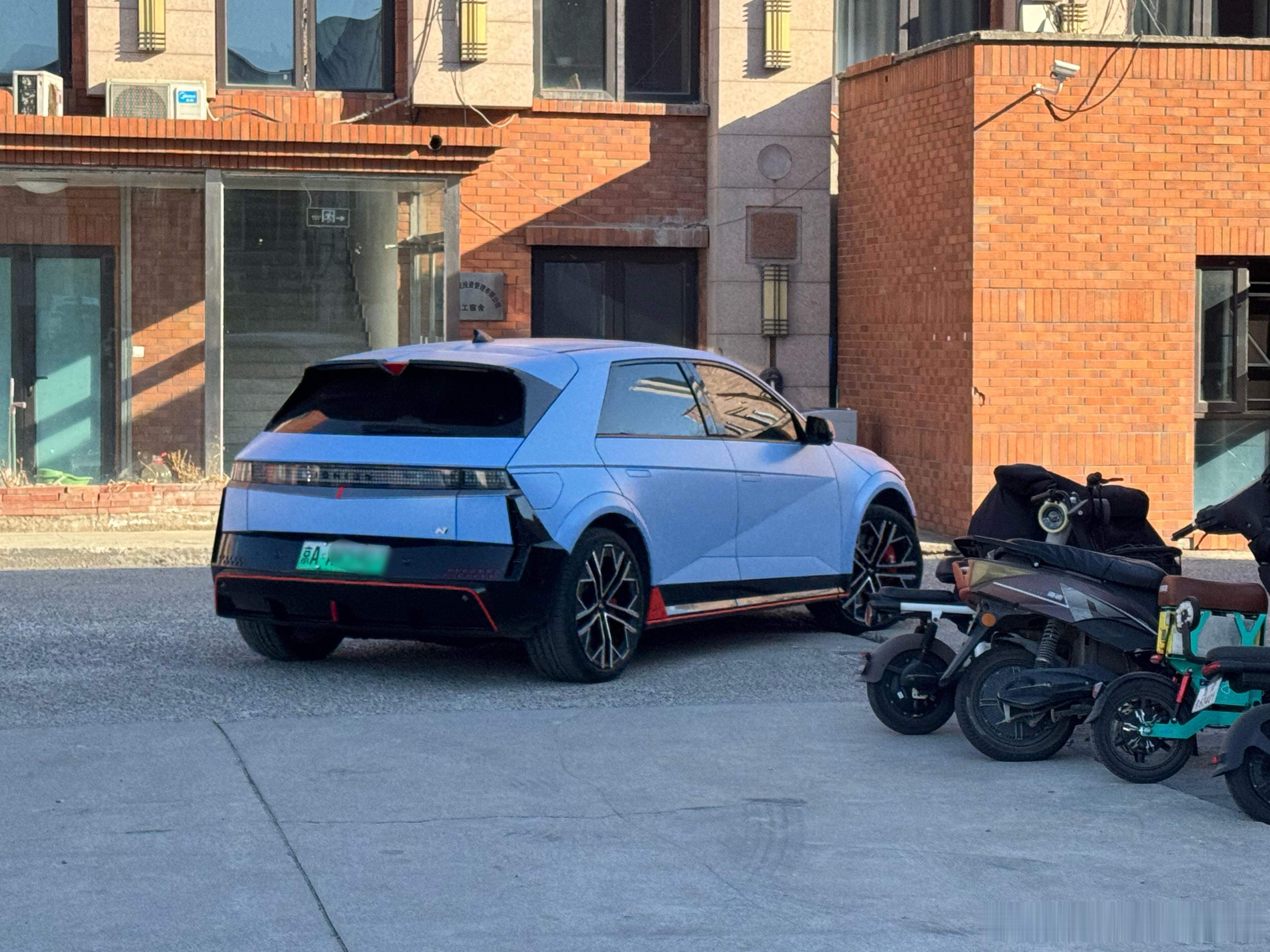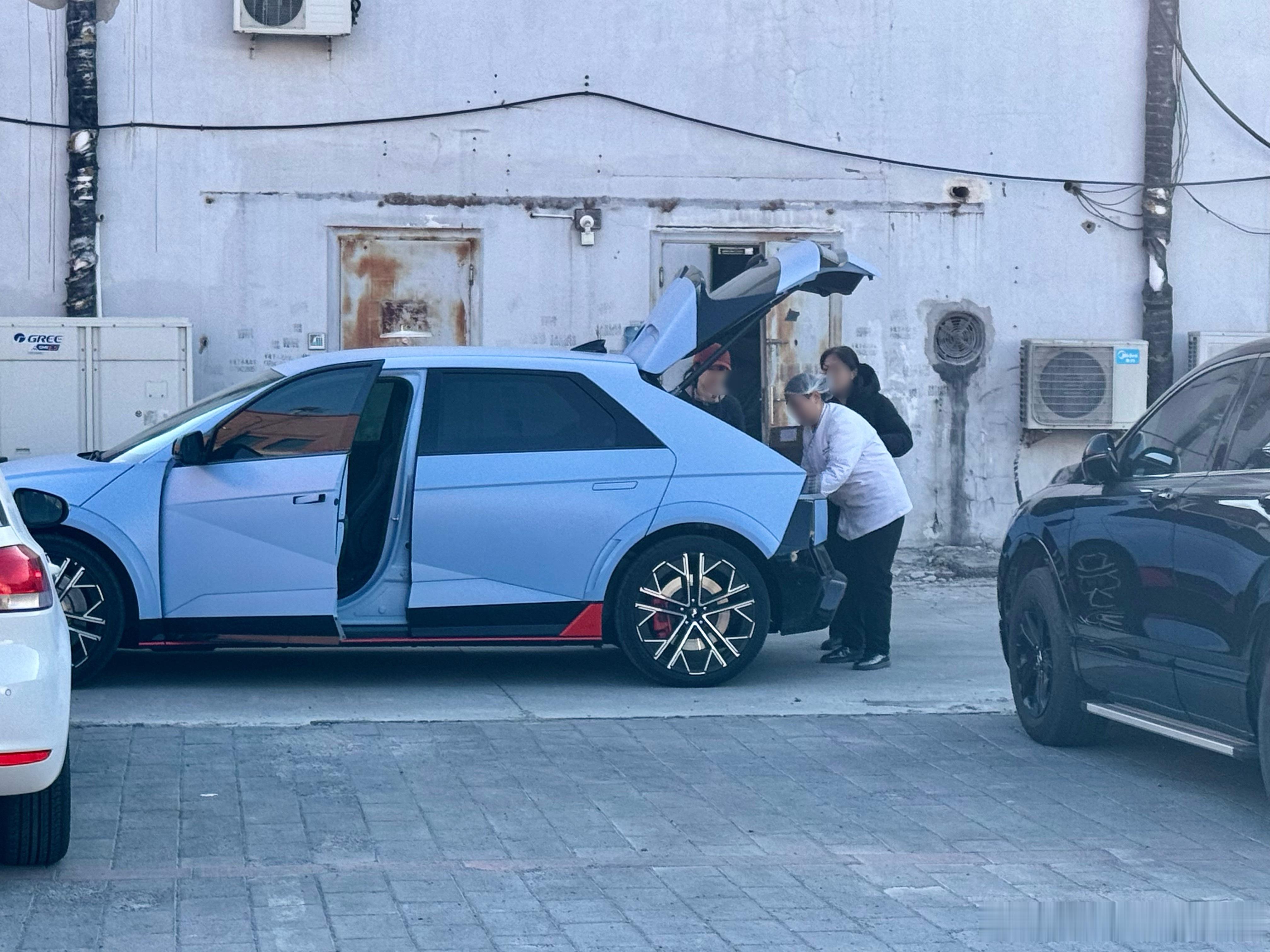 不是?!现代Ioniq5 N 面包运输车是什么情况??!中午吃完饭出来,抬头一看,前面几位老大姐,正搬着面粉面包正往这辆Ioniq5 N里塞呢!卧槽什么情况???!咱就说这老几位和这车,在正常世界线上,应该产生不了任何交集啊!画面太魔幻,以至于亲眼看到但都觉得发假。我实在太好奇了,去问了问,车是一位漂亮小姐姐开的,眼神无比清澈,说是男朋友塞给她的车,我看了看那两张桶椅,又看了看后备箱里的货,行,这画面不就是现实版头文字D吗?可太酷了!北京最速面包运输车是吧?从院里出来绕前面一看,是个烘焙学校,您有位非常酷的学员,学员男朋友更酷凯文聊车