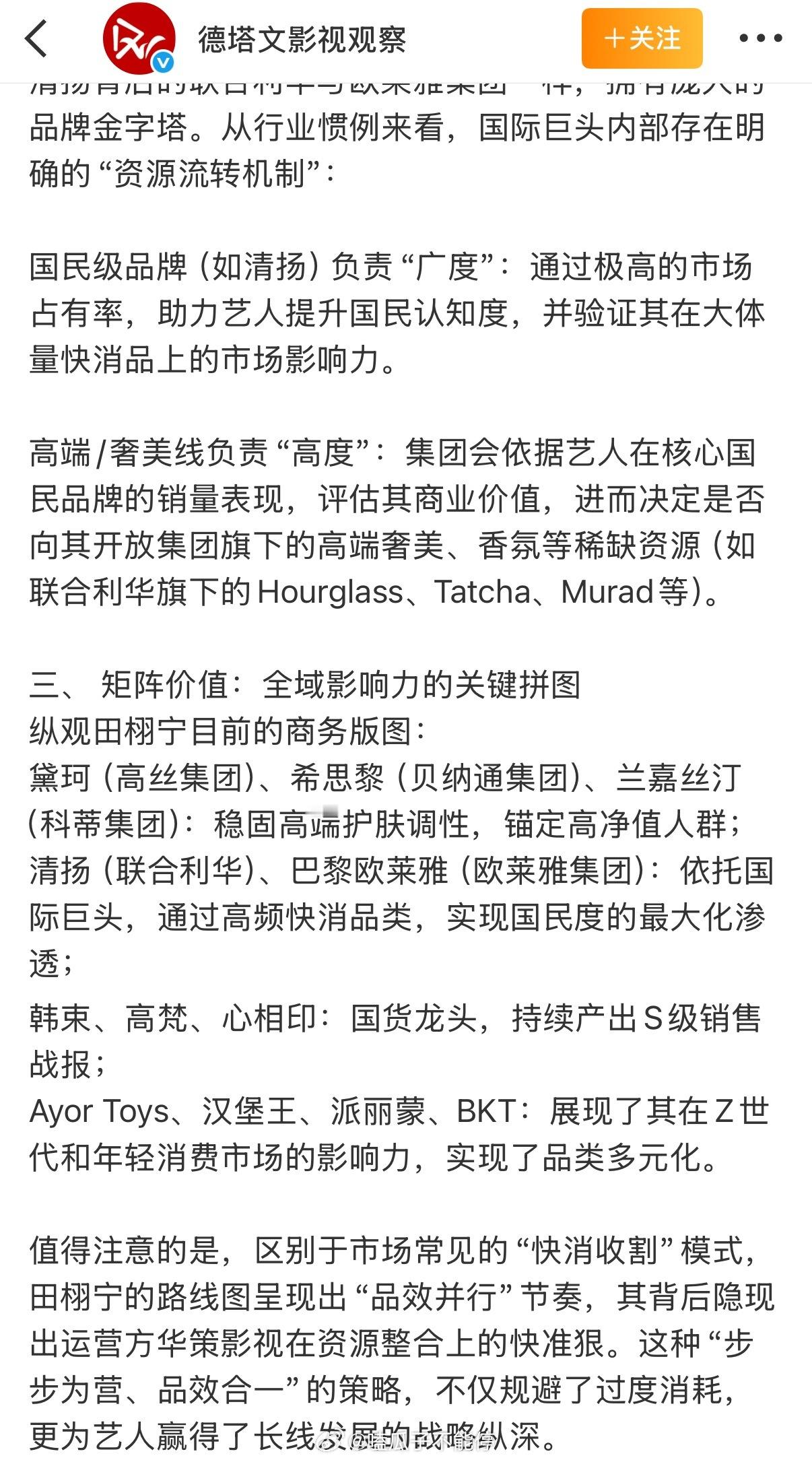 德塔文发长文夸田栩宁和分析田栩宁的各种商业价值