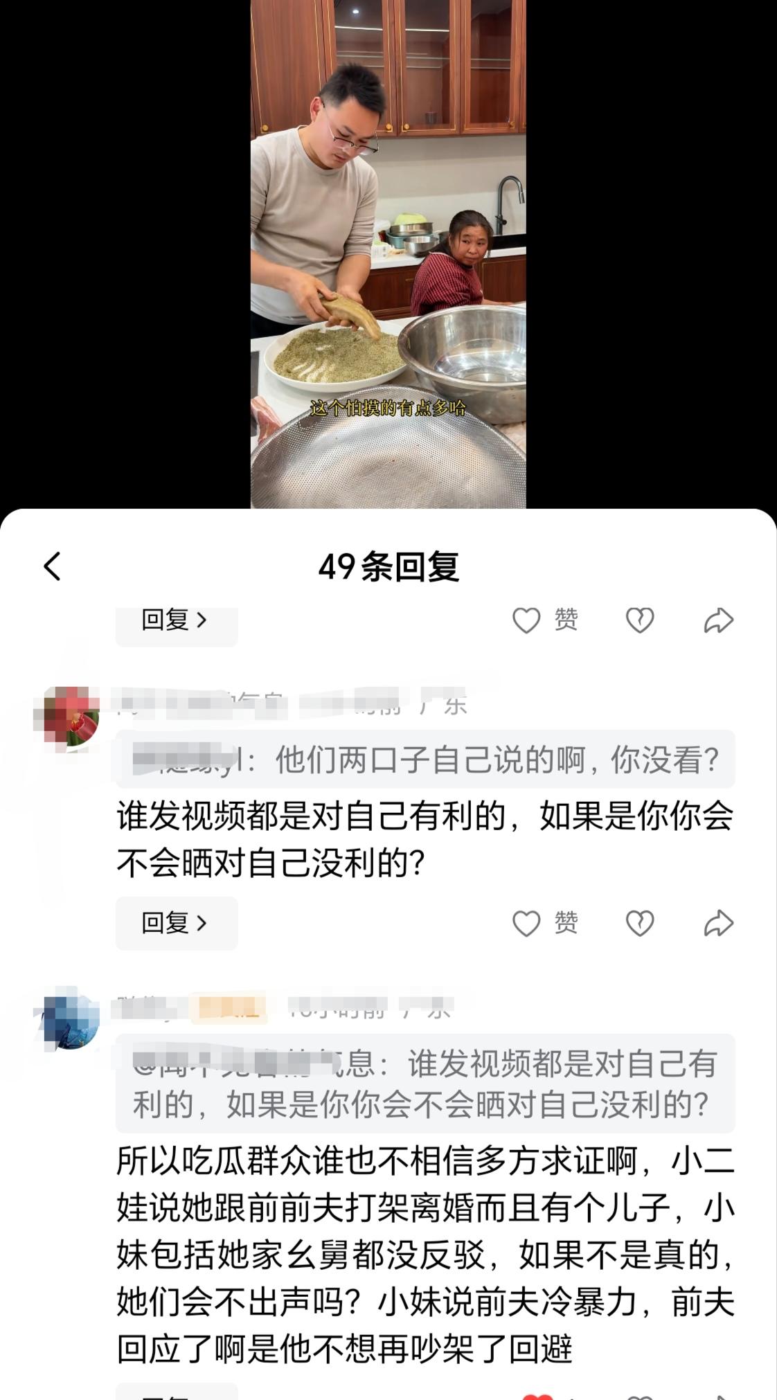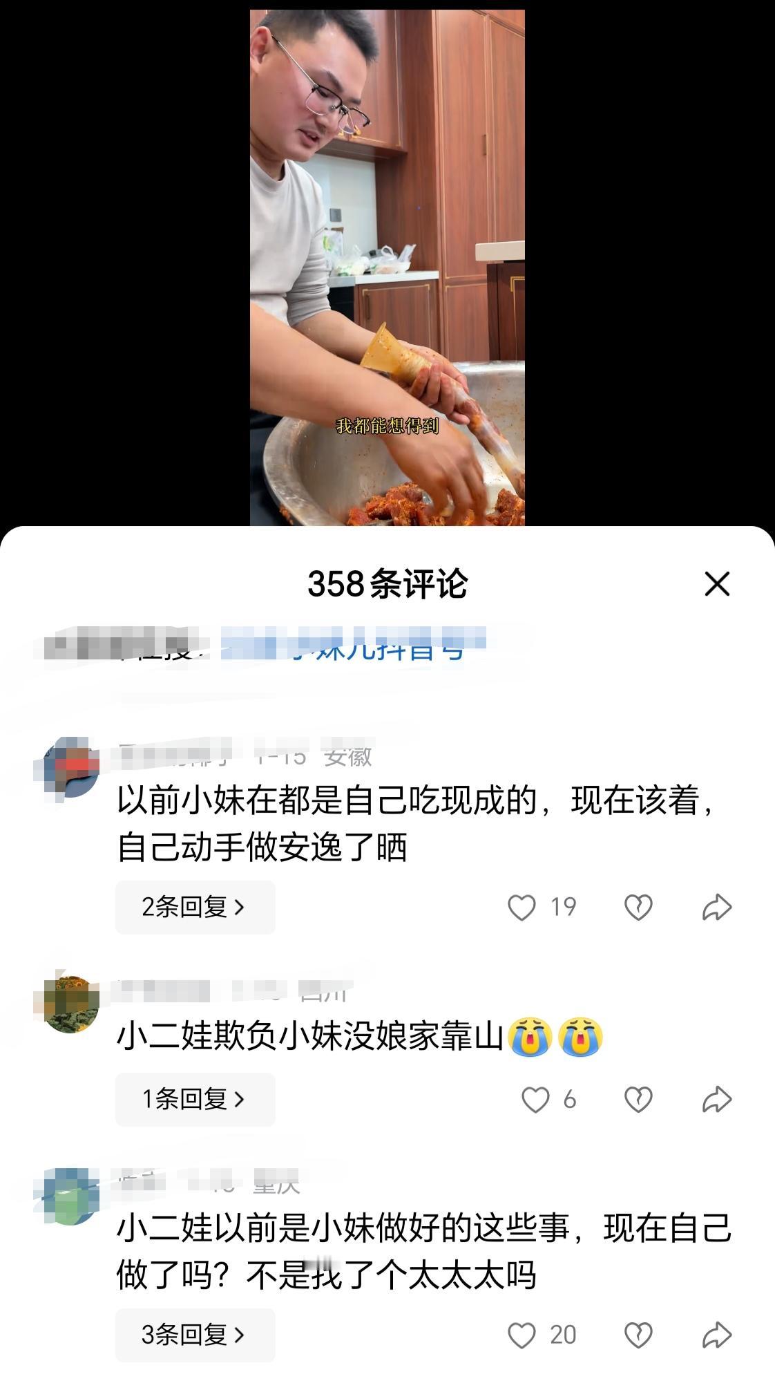 1:为什么小二娃现在拍的视频不是小妹儿在干活而是小二娃在干活呢? [憨笑]因为小二娃是视频的主角,谁在屏幕前就拍谁,小二娃出镜人就是小二娃干活,小二娃不干活,难道要摄像头自己干吗? 2:为什么以前视频是小妹儿干活?为什么要欺负小妹儿? [憨笑]因为以前小妹儿是出镜人啊!她正常干活也是为了视频顺利开拍,不存在谁欺负谁啊! 3:小二娃是渣男,抛弃小妹儿,亏妻者百财不入还想吃网络这碗饭? [憨笑]渣在哪里了?渣在离婚后谈了一个对象吗?那这个理论天下都是渣男,因为妻子提离婚,男人答应离了的离婚男太多。亏妻亏夫,当事人知道,不止有亏妻子百财不入也有亏夫者百病缠身。网络不是某一个人的,小二娃可以在网络上吃上一口饭。乡村小二娃