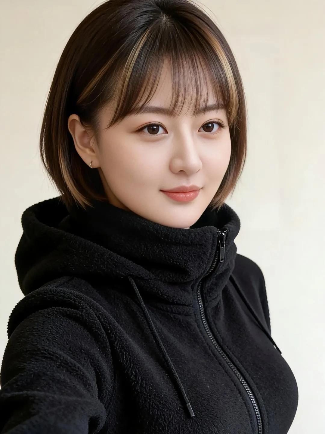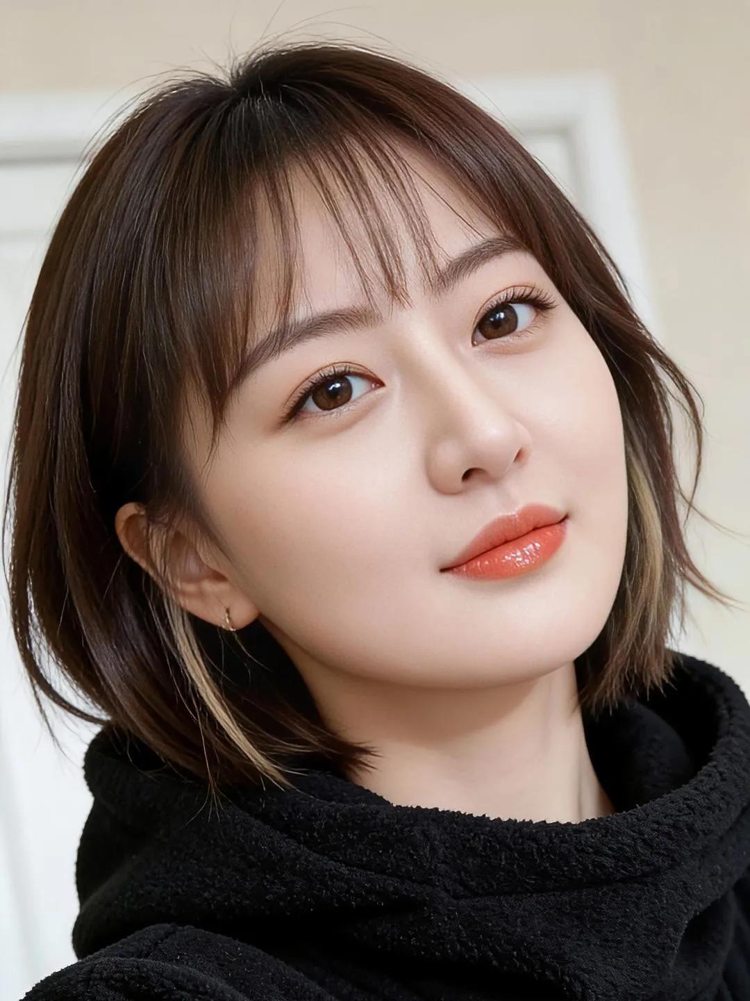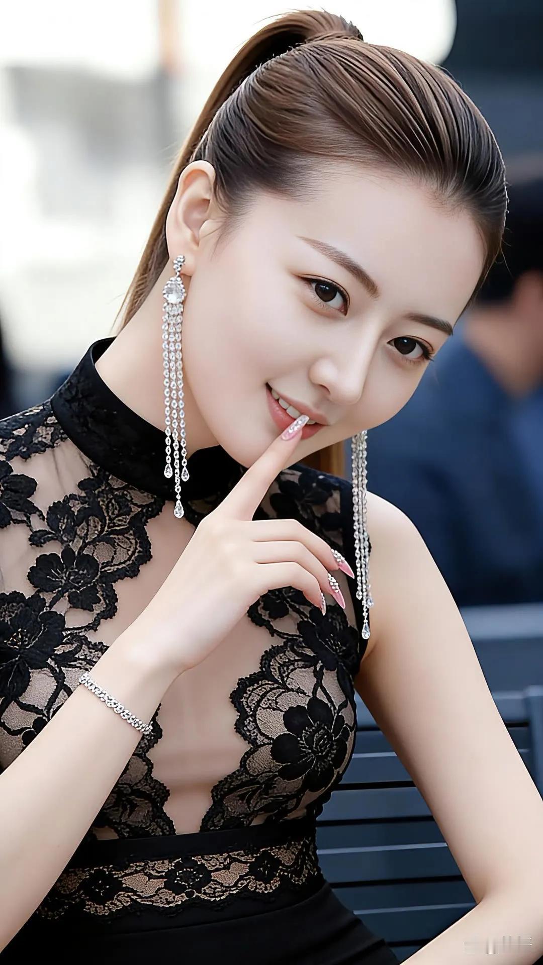 优雅黑裙,精致妆容,指尖轻触,尽显迷人魅力。