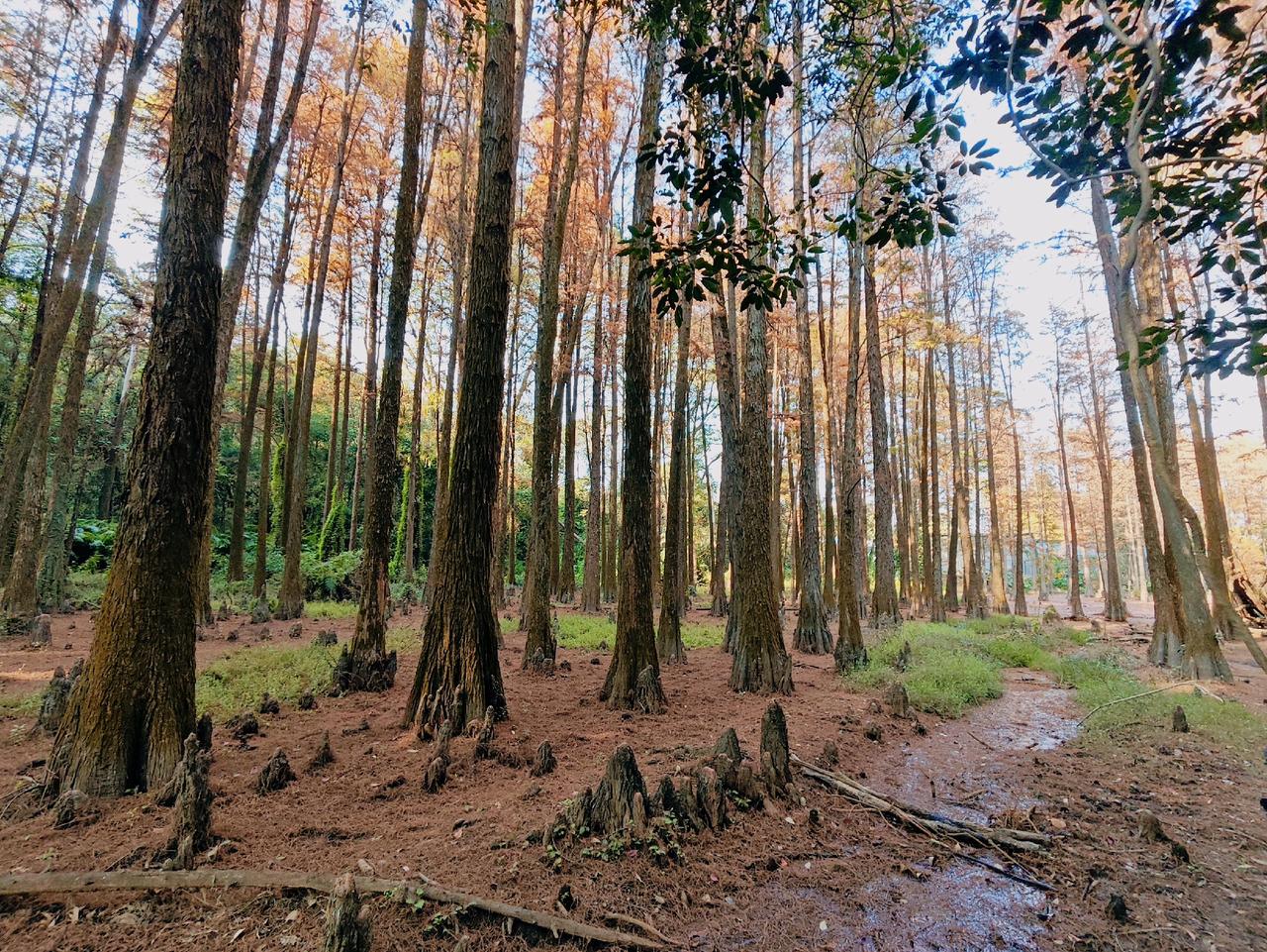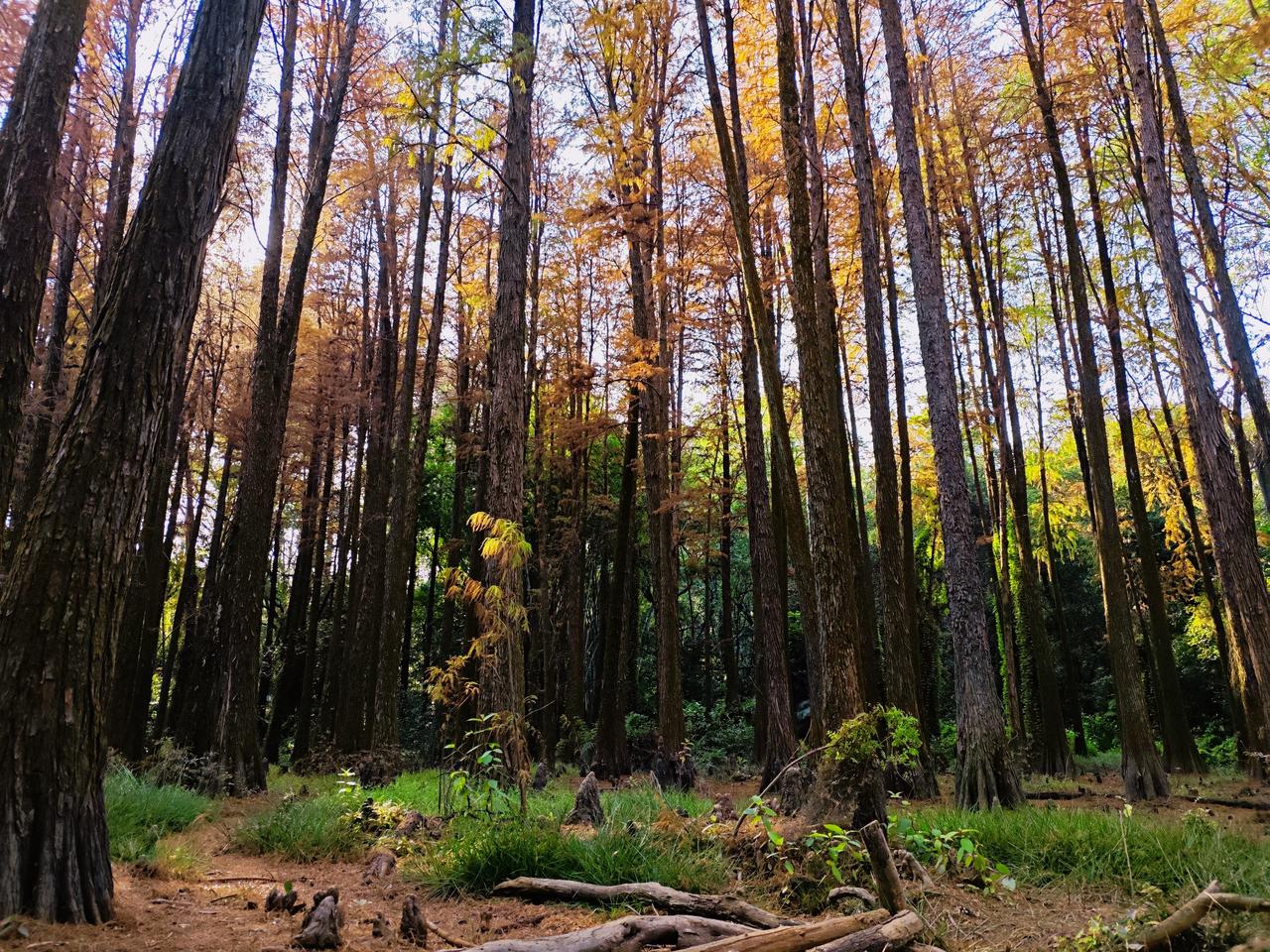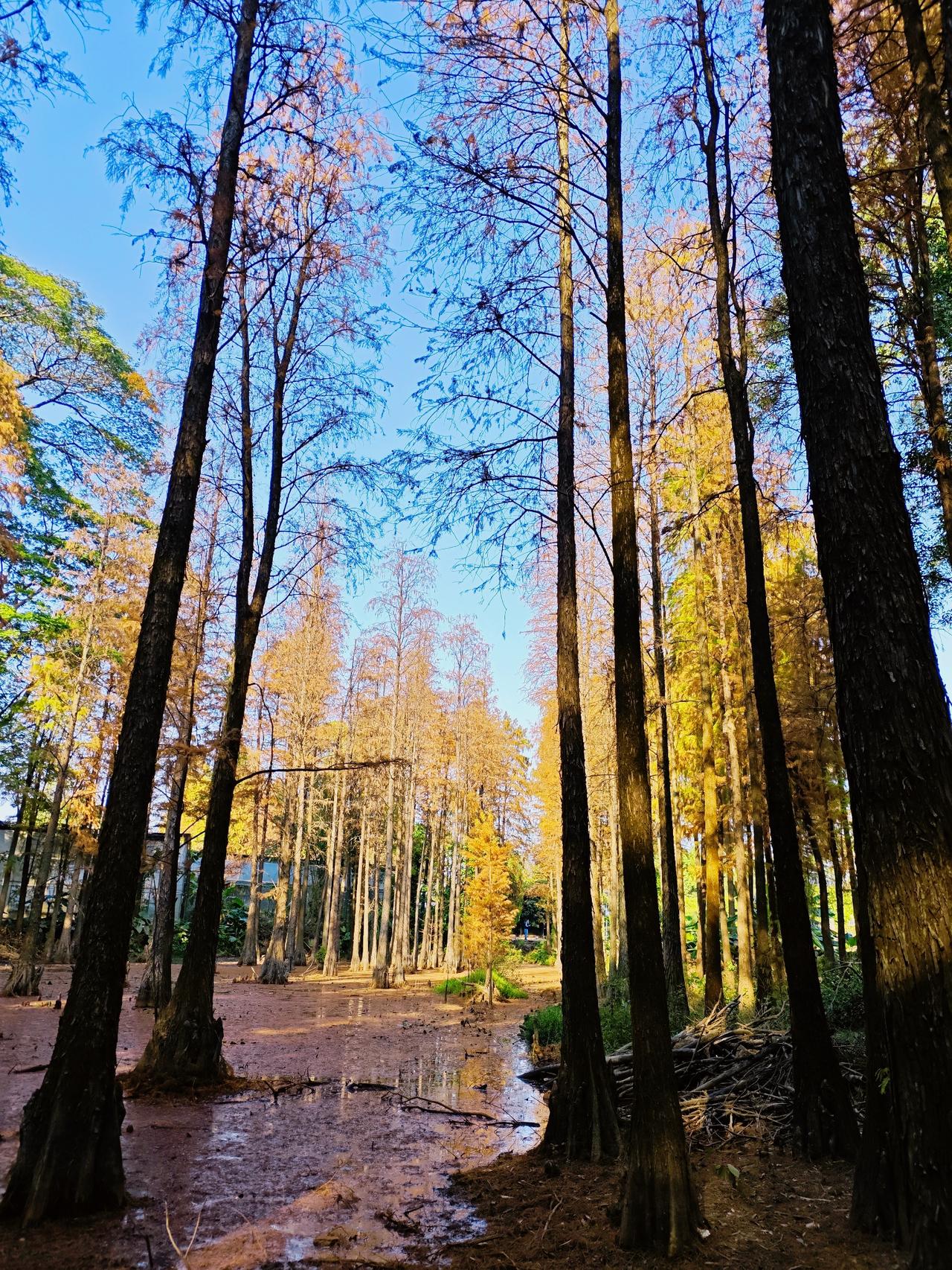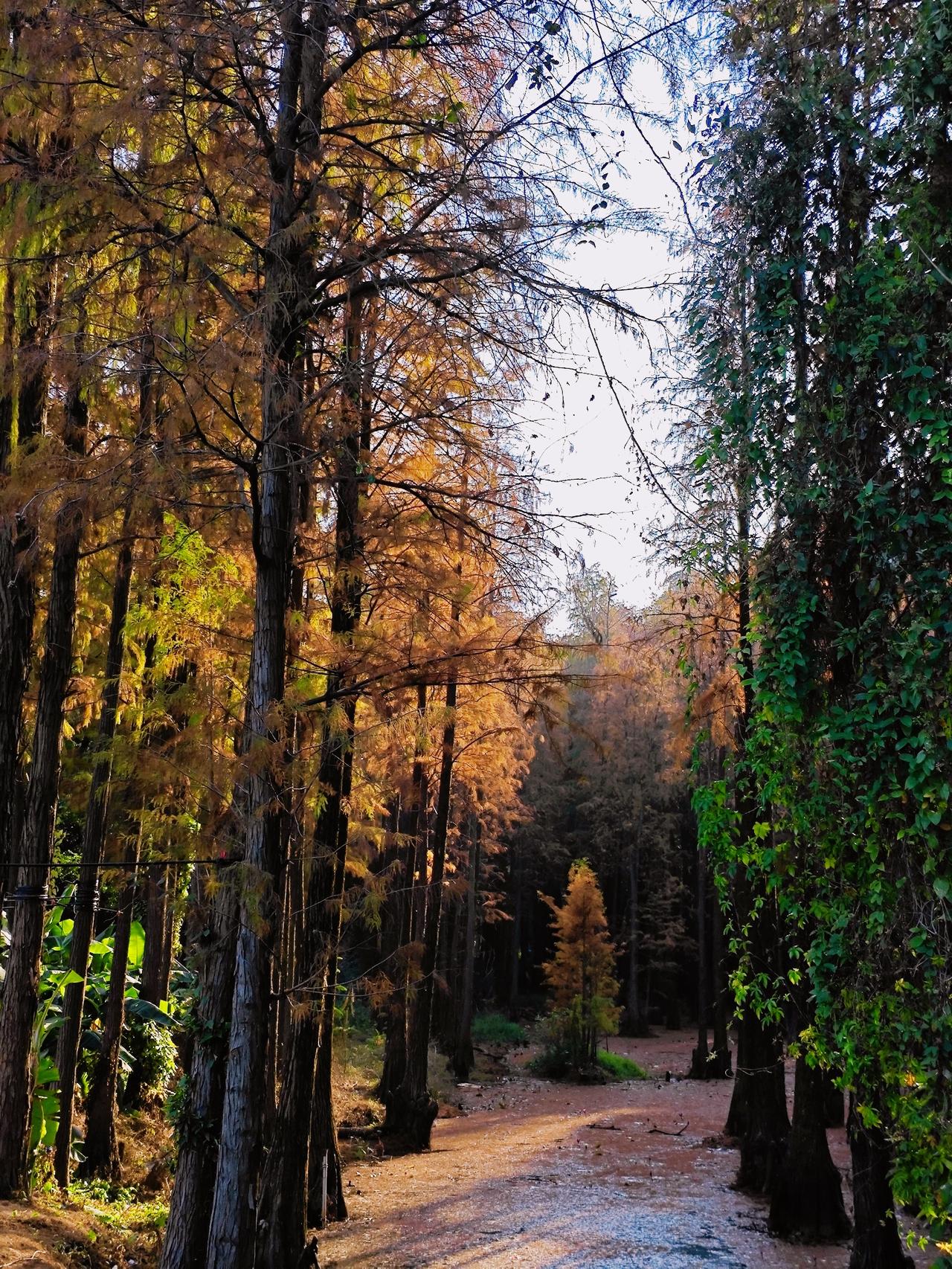 这个冬天,不妨来一趟华农树木园,毕竟,这样的色彩盛宴,一年只有一次! 广州的冬天从不是单调的灰白,一场盛大的色彩狂欢正悄然上演。作为藏在高校里的“活体植物博物馆”,24公顷林的地中,近千种植物静默生长,而每年12月至次年1月,落羽杉宛如大自然精心调配的“美拉德”色系油画,将冬日的渲染得暖意融融。 沿树木园主路前行约五分钟,一片临水而生的落羽杉林骤然闯入视野。它们高大挺拔,羽毛般的叶片层层叠叠,同一棵树上竟能寻到从浅黄到深红的完整渐变。午后的阳光最为温柔,为红杉镶上一层鎏金边,氛围感直接拉满! 不同于热门景区人潮涌动,华农树木园是一处静谧的净地。没有喧嚣的叫卖,只有风声、鸟鸣与树叶的沙沙声。美好从不需要刻意寻找,只等待着有心你去发现! 交通指南:地铁3号线五山站A口出,步行10分钟可达华农南门,入校后导航“树木园”(近经济管理学院);校内可租用共享电瓶车,节省步行时间,但树木园内禁止骑行。 开放时间:全天免费开放,落羽杉最佳观赏期为12月-次年1月中旬,目前变色率已超80%,正是观赏好时机 !广州落羽杉 落羽杉 水杉 大学校园 广州