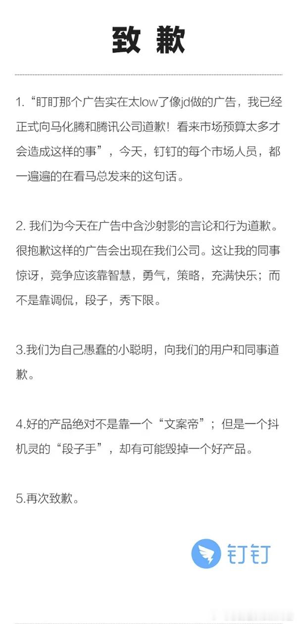 西贝与阿里的公关,是同一种病,两种症状。更能说明阿里“公关天团”愚蠢的小聪明的是钉钉事件。2016年5月,阿里钉钉在《深圳晚报》《南方都市报》《晶报》头版登整版广告,文案为:“李女士:惊悉您在某群被骗85万公款。我们想说,在我们这里,无论’蒋总’、董事长、还是同事们,都是真的,您不会再上当受骗”画面以微信绿和钉钉蓝拼接,影射武汉会计李女士因微信群诈骗损失85万的案例,暗示微信不安全、钉钉更可靠。图片此前钉钉已在深圳腾讯大厦附近地铁站投放类似地铁广告,如“钉钉群的蒋总是真的,钉钉上只有工作;××群的蒋总是真的吗?”,跑到微信家门口,持续对微信工作场景的安全性与专注度进行隐性攻击。广告引发腾讯不满,公司高层介入。马云在钉钉工作群批评该广告“太low,像京东做的广告”,并表示已正式向马化腾和腾讯致歉,还错把“钉钉”打成“盯盯”。接下来,神级操作出现了。钉钉后来发布致歉信,竟把马云群聊截图给公开了,承认广告是“愚蠢的小聪明”,向用户、腾讯及微信道歉,强调竞争应靠勇气与智慧而非调侃、段子,同时反思市场推广方式。可是,你道个歉还要把京东拉上吗?很多网友被这种low操作吓傻了。马云顺带提及京东的表述引发额外讨论,钉钉再度道歉。我到现在也想不明白,公关天团为什么要这样坑马云?该广告涉嫌违反《广告法》中“不得贬低其他生产经营者的商品或服务”的规定,存在被罚风险,成为企业营销的反面案例。 贾国龙让罗永浩道歉赔偿留几手说西贝这局面不是罗永浩初衷贾国龙找回微博账号罗永浩称贾国龙胡来罗永浩回应西贝事件借自己爆发贾国龙今晚10点全面回应