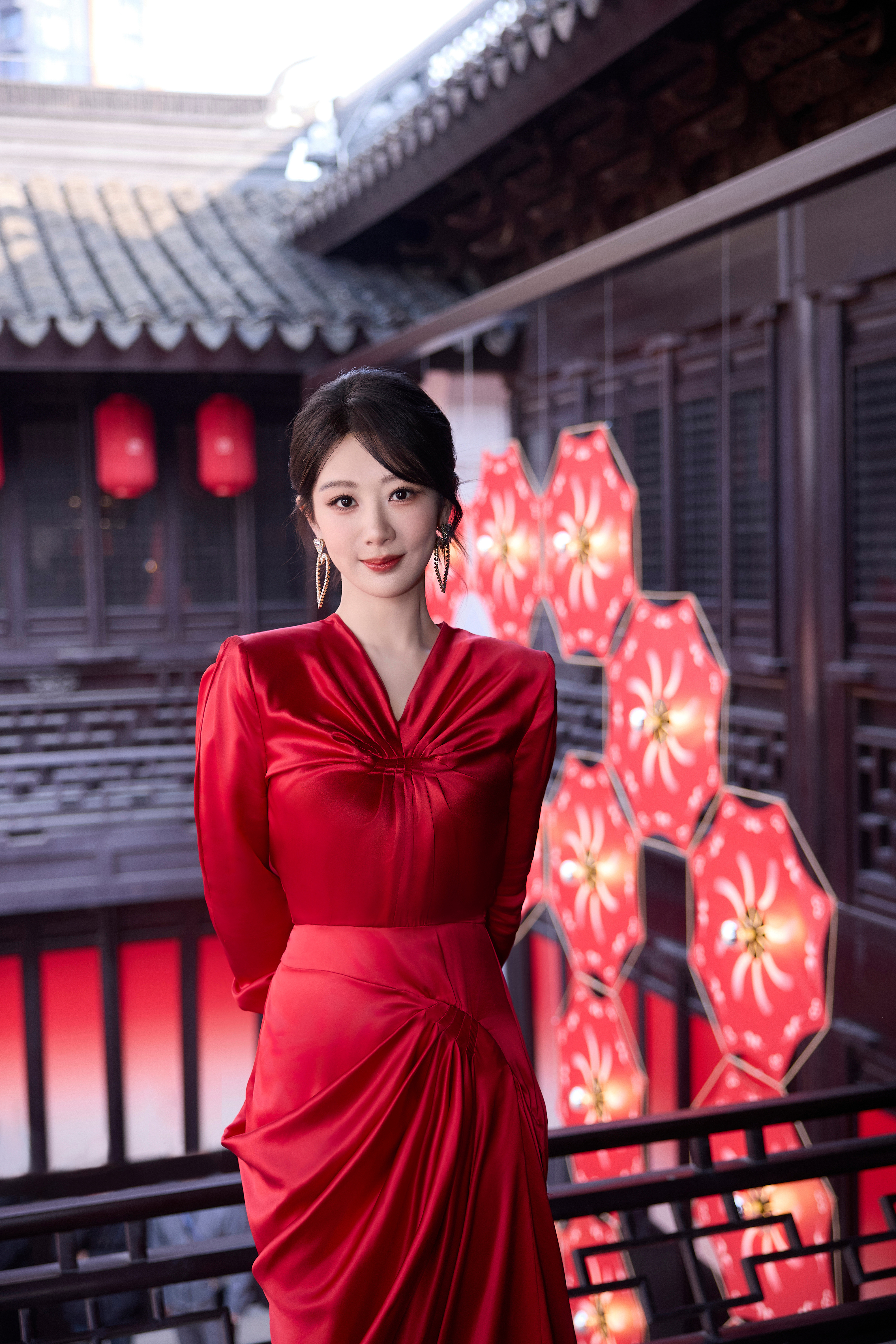 代言人杨紫今日出席华伦天奴品牌活动,身着Valentino 2026春夏系时装亮相,一袭褶皱设计红裙搭配钻饰心形耳环,蛮适合今天“华灯驭梦”的活动主题,美丽亮眼,紫妹就是很红、很明媚啦~ 杨紫红裙好明媚