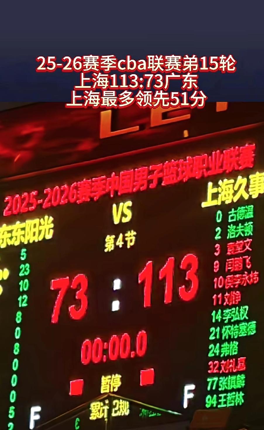 CBA之惨案 小胖子定海神针, 张公子暴虐篮筐, 新赛季惊现惨案。 黑白矮状态低迷, 杜锋怒骂胡椒仔, 冠军队每况愈下。 CBA常规赛第15轮,广东队在家门口遭遇了一场惨败,73比113,整整输了40分,幸亏卢伟把主力换下去了,否则惨不忍睹,这场面太惨烈。比赛一开始,广东队就被上海队按在地上摩擦,开头几分钟就被打出12比0的高潮。全场广东队三分35投5中,命中率低得可怜。 胡明轩更是这场惨败的“背锅侠”,12中2,三分9中1,只得12分5板。开局还两次三分不中,空篮都打铁,低迷状态影响了队友。萨姆那23分,徐杰10分。杜锋在场边急得跳脚,各种动作都使出来了,还怒骂胡明轩。赛后杜锋也指出全队准备不足,连赢了几场比赛,就想轻轻松松赢上海,那是不可能的。这场大败让广东队看清了和强队的差距,希望他们能及时调整,重新找回状态。 广东男篮 广东男篮cba 广东宏远CBA
