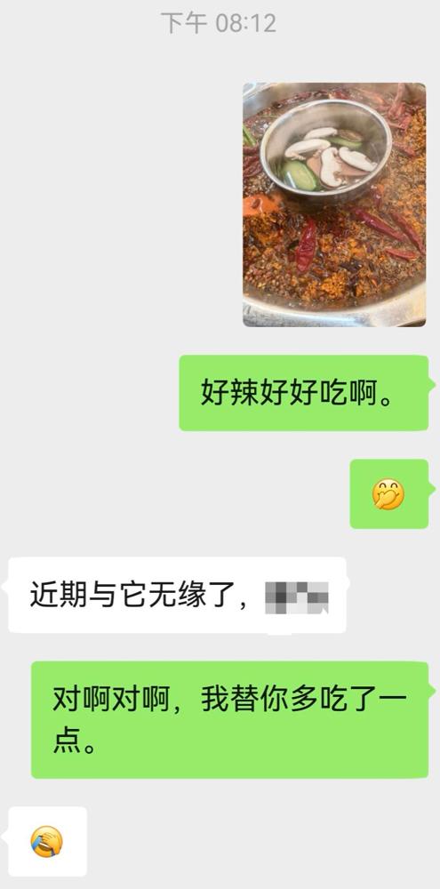 中午一起吃的酸汤鱼,下午他就肠胃炎了?我没事啊,晚上继续火锅。并且,这几天,我们
