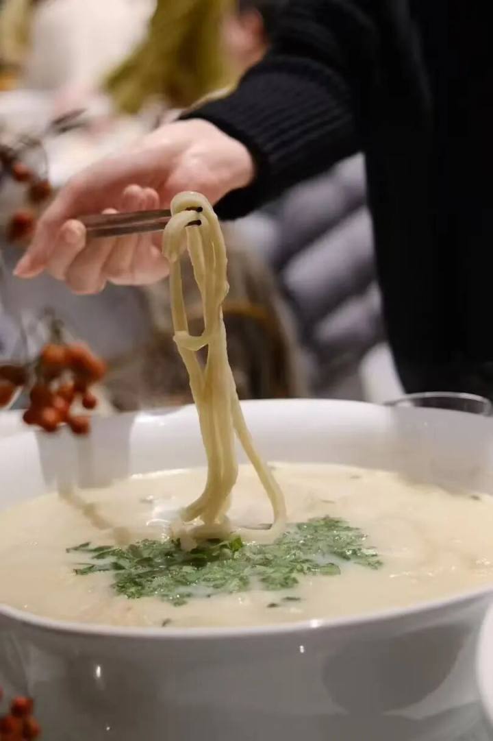 主食是一道荆州鱼面,鱼糜与面粉制成的荆州鱼面,细腻而有韧性。鱼面煮熟后,浸入鱼汤,以葱花、香菜提香。鱼面吸饱鲜汁,爽滑弹牙,鱼肉鲜甜与麦香暗合。