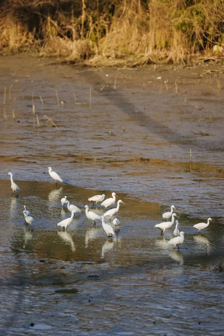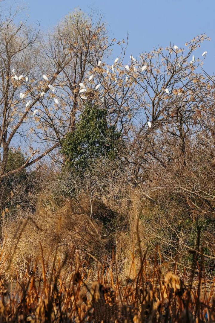西溪清塘,寻常水满,白鹭并不常见,如此群聚更是少有,想来是水落石出,可以逮牢机会,浑水摸鱼,大啖鱼虾,真是万物有灵。