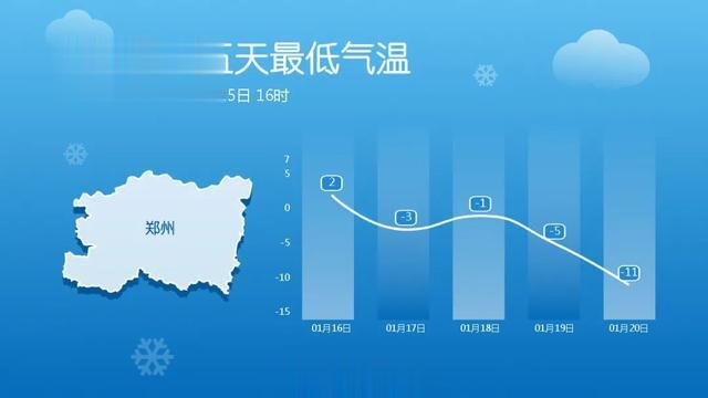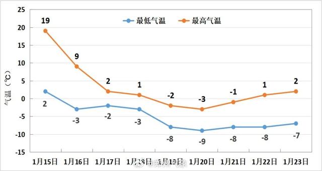 图22026年1月15日至23日郑州气温趋势图(单位:℃)