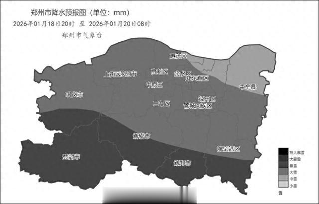 图12026年1月18日20时至20日08时郑州市累计降雪预报