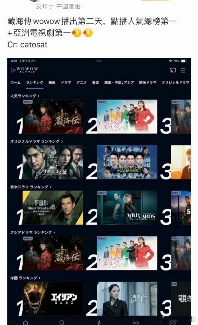 肖战《藏海传》🇯🇵播出第二天就点播人气总榜top1➕亚洲电视剧top1,还有
