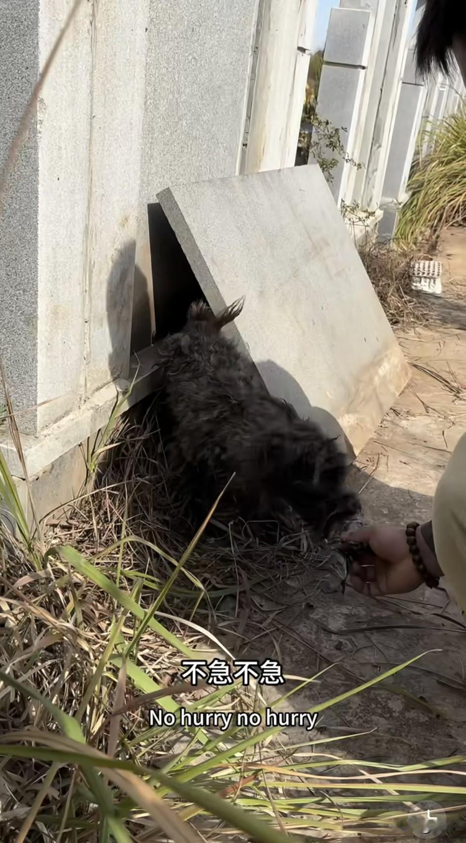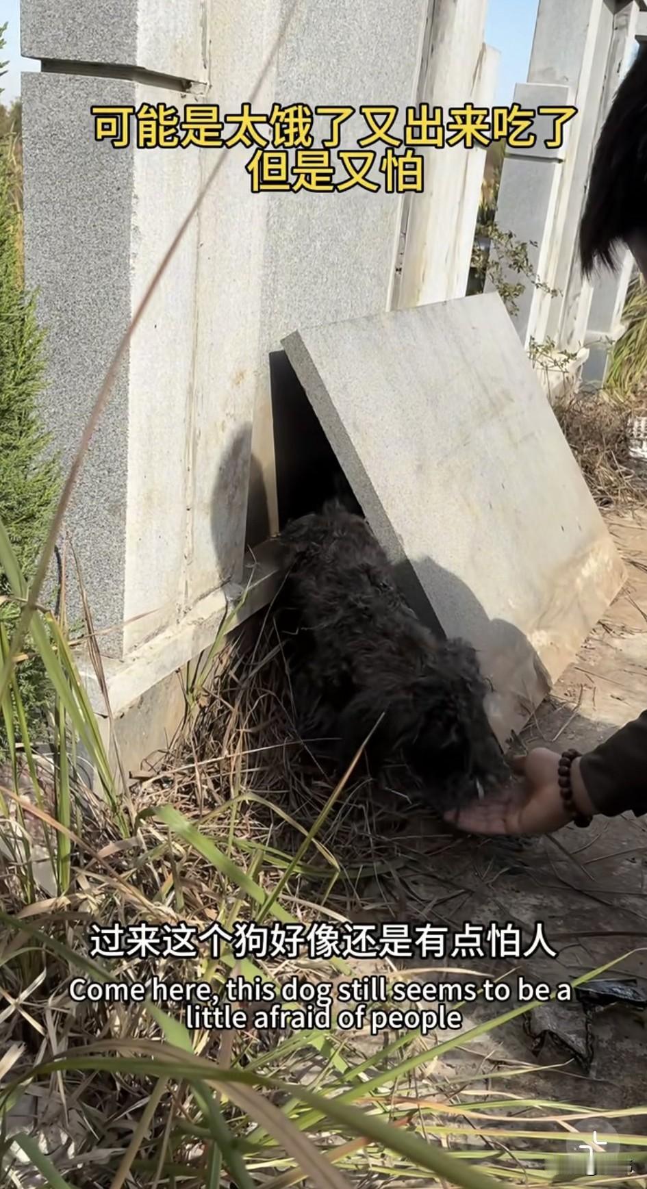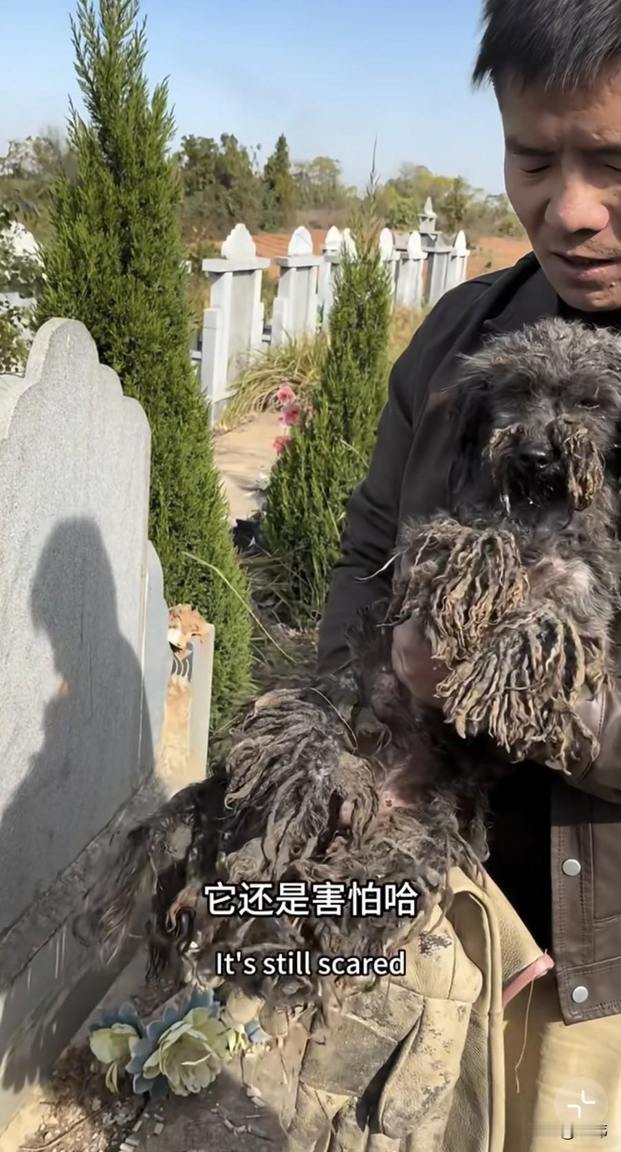 泪目了!一位爱心小哥哥听说有一只非常忠心的狗狗,守护在它去世主人的墓前已经好几年了,一直在流浪,风餐露宿的过着,它的毛发已经非常脏乱了,全部靠着墓地的祭祀贡品和村民的投喂活着,所以村民希望小哥哥可以救助一下狗狗。 于是善良的小哥哥就来了这块墓地,他找了好久才找到了躲在一块闲置墓碑下面的狗狗,狗狗非常害怕,都不敢出来,他只好拿出食物诱惑它出来,之后小哥哥就把它抱出来,然后来到它主人的墓前,小哥哥抱着它真诚的鞠躬,并承诺会给狗狗找一个好主人!这才把狗狗带回去清洗打理,之后给它找了一位善良的小姐姐当主人!狗狗在她那里也是过上了安逸的好日子。