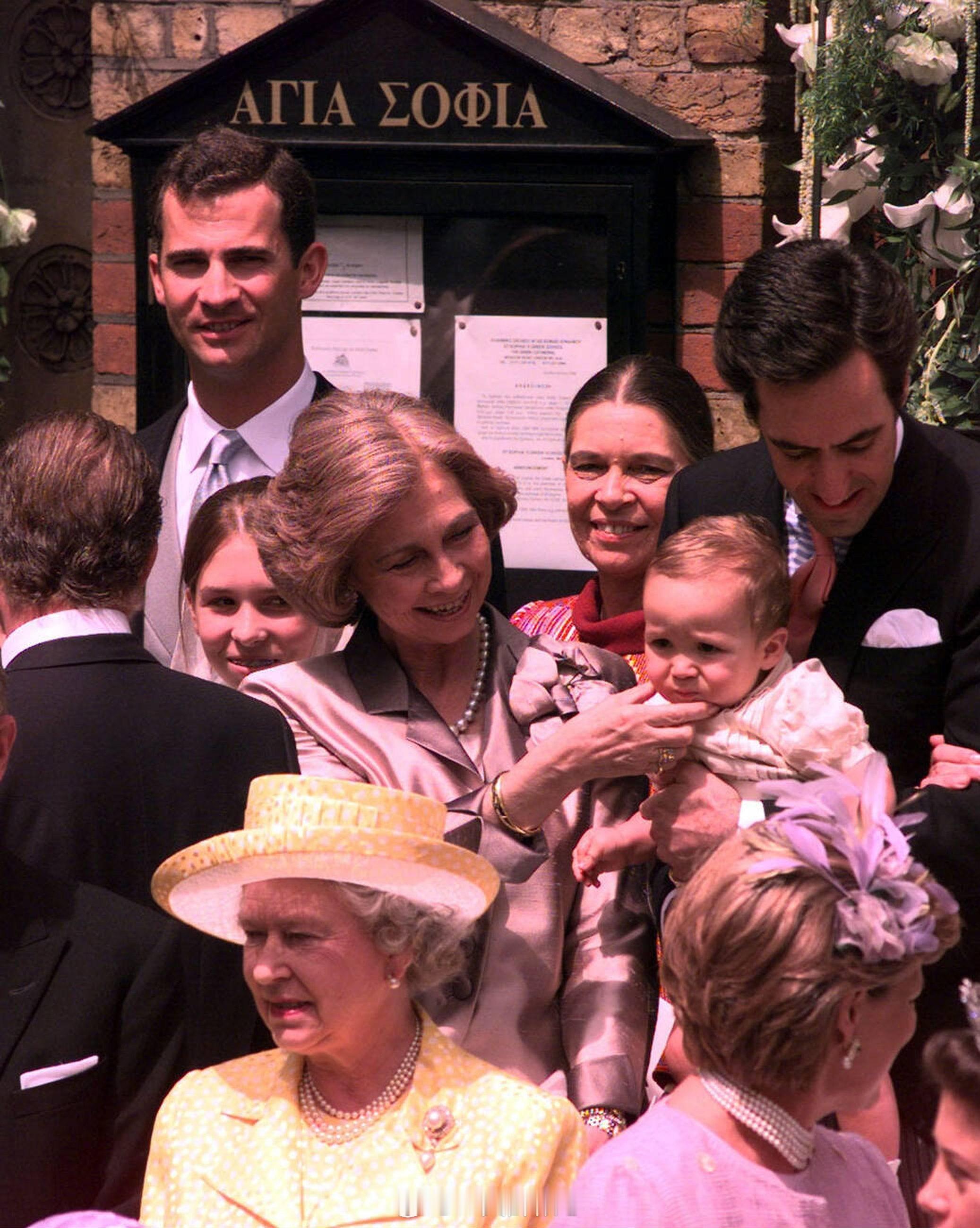 英国王室 1999年7月9日,伊丽莎白二世女王在伦敦的希腊东正教圣索菲亚大教堂参加希腊丹麦的艾莉希亚公主和Carlos Morales Quintana的婚礼💒艾莉希亚公主是希腊末代国王康斯坦丁二世和安妮玛丽王后的大女儿。