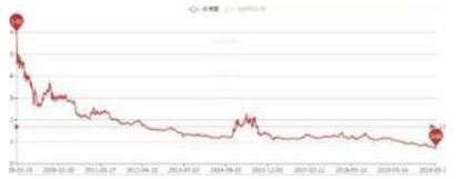 中国石油的市净率走势,从2008年3月24日的5.92,跌到了现在的0.68元。先再跟大家说一下市净率的概念:市净率(Price-to-BookRatio,简称P/BPBR)指的是每股股价与每股净资产的比率。如果每股股价是一元,对于每股净资产是1元,那么市净率是1,1元买入一股,正好买入它的净资产值。如果每股股价是1元,对于每股净资产是2元,那么市净率是0.5,你1元买入一股,买入它的2元净资产,等于你花了1元买入了值2元的东西,所以当净资产低于1的时候,你都是占便宜的。相反,如果每股股价是一元,对于每股净资产是0.5元,那么市净率是2,你1元买入一股,买入它的0.5元净资产,等于你花了1元买入了值0.5元的东西,所以当净资产高于1的时候,你都是吃亏的。问题是很多好公司,我们很难等到净资产率低于1的,一般3可能也很好了。比如贵州茅台最新的净资产率是11,而历史最高超过30。哪怕是2013年的茅台,净资产率也超过3,那可是历史最低了。