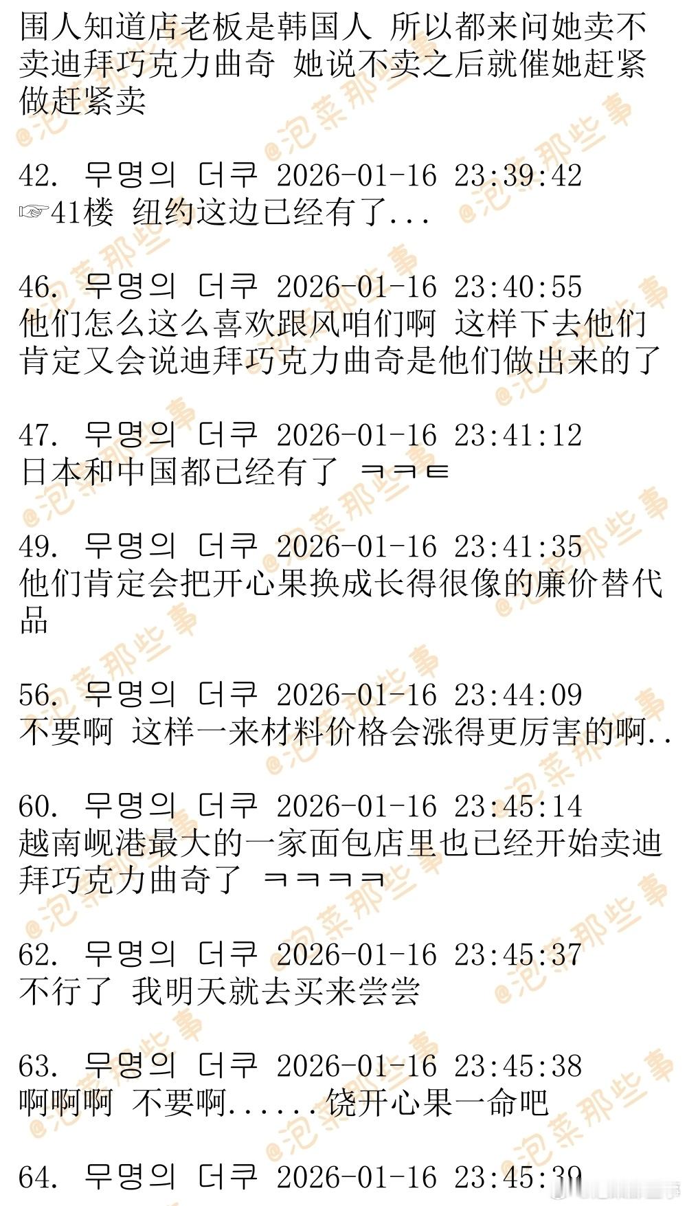 🔥🔥韩网500楼热帖评论翻译🔥🔥从韩国火到中国的迪拜巧克力曲奇据韩媒报道,迪拜巧克力软糯曲奇在韩国爆火之后也在中国全境流行开来,有名的甜品店纷纷跟风,打出“张元英同款”的旗号热卖中。cr.theqoo