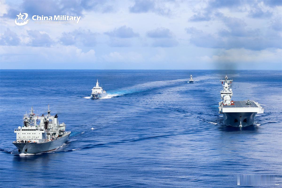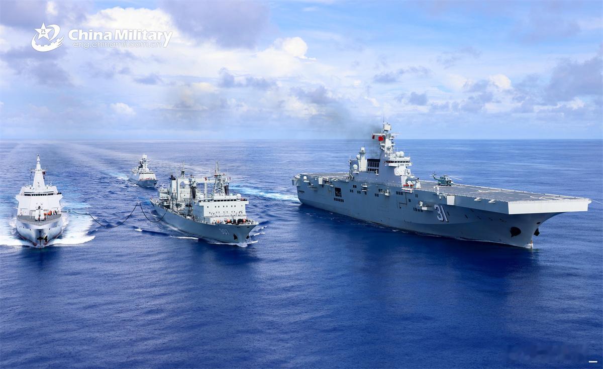 上个月前出南太平洋并参加正义使命演习的海南舰编队新图:726气垫艇和Z-20J直升机都带上了