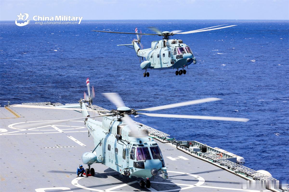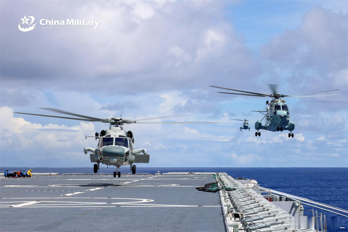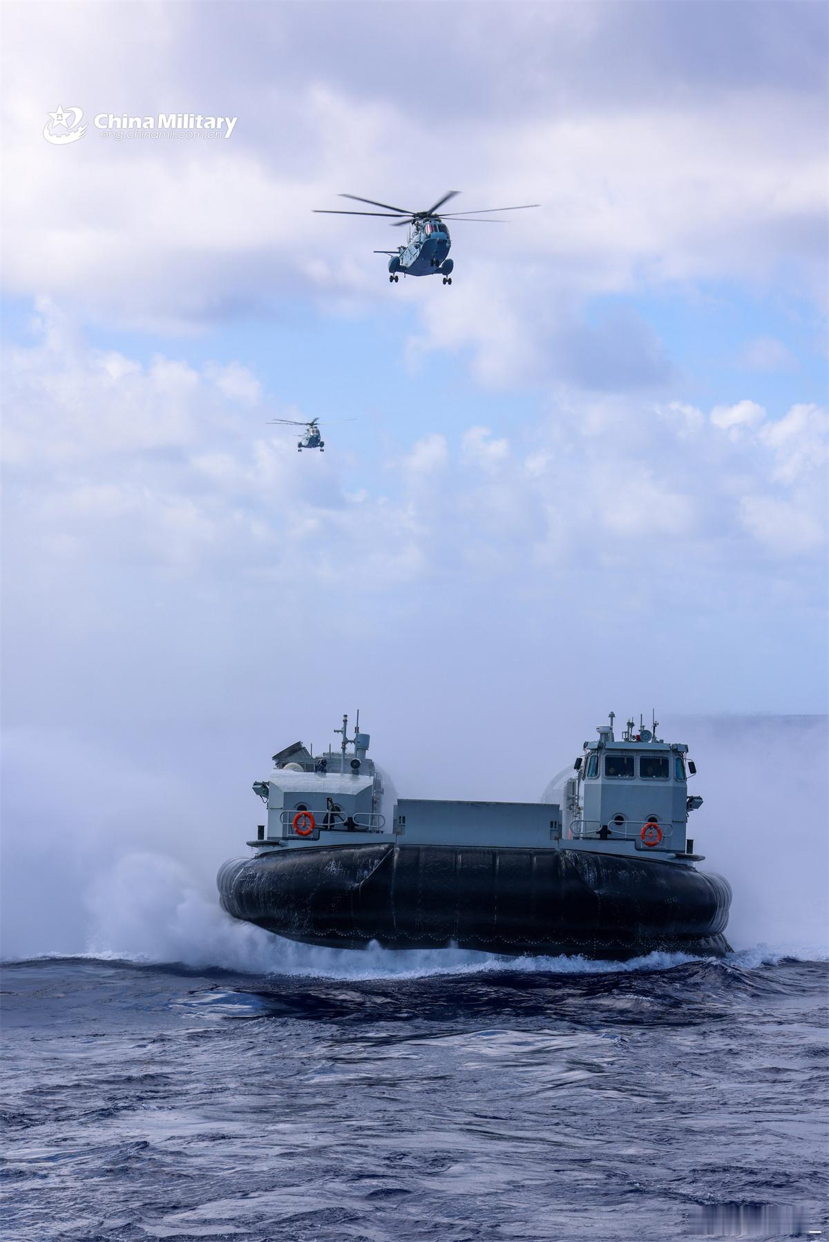 上个月前出南太平洋并参加正义使命演习的海南舰编队新图:726气垫艇和Z-20J直