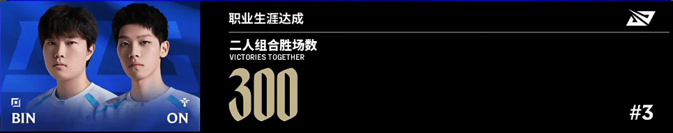 Bin和ON两人搭档获得LPL第300场胜利,位列LPL历史第三