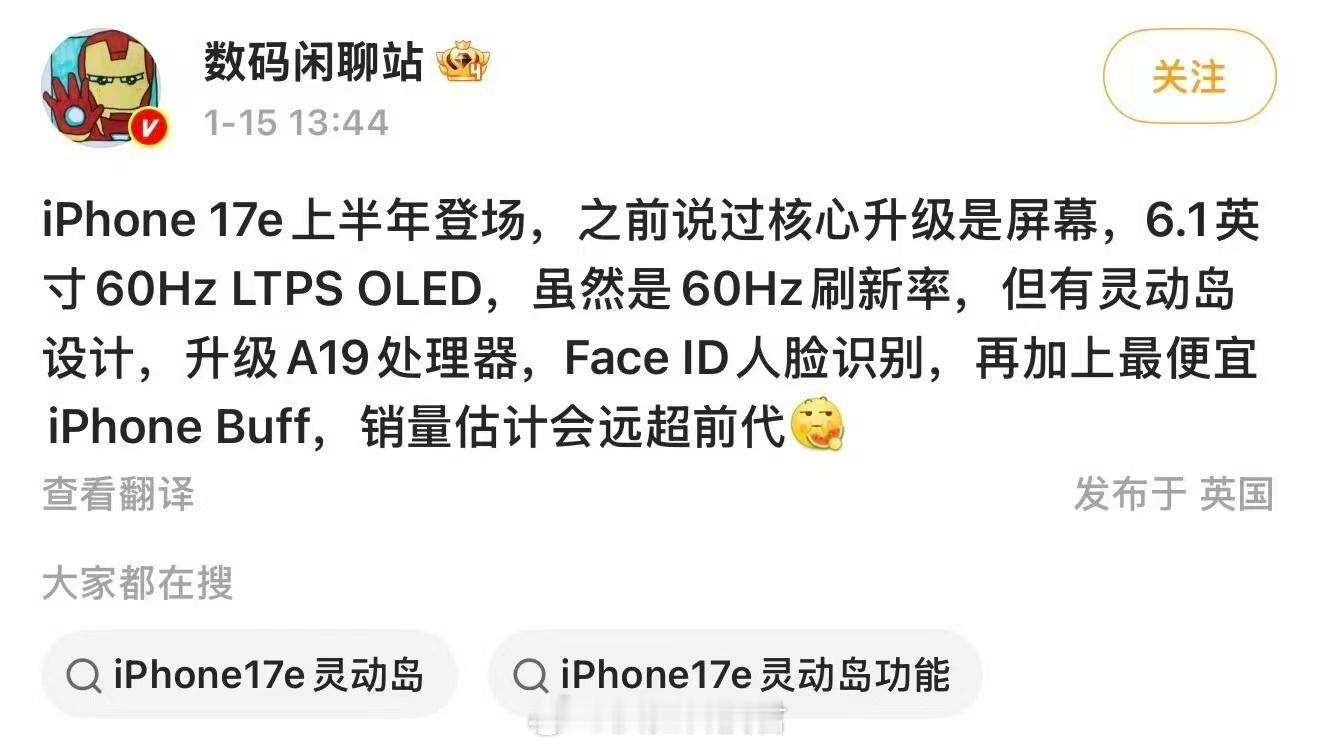 苹果即将在春季推出的 iPhone 17e,核心亮点是 A19 芯片+灵动岛+256GB 起步存储,在性能和基础体验上诚意十足。不过 60Hz 屏幕的设定,也延续了苹果在入门机型上的策略。瞄准的是追求苹果生态、预算有限的用户,599 美元的定价和无高刷的取舍,精准贴合了“够用就好”的实用需求,预计会成为又一款走量机型。苹果