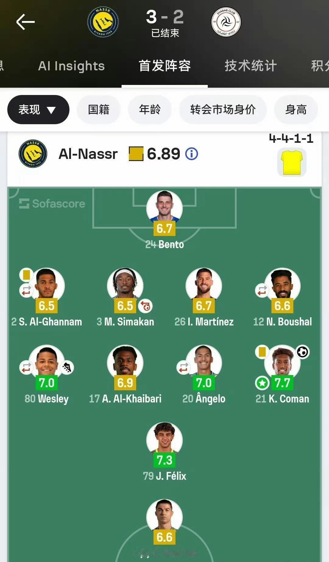 利雅得胜利3-2利雅得青年人。利雅得胜利终结4连败拿下三分,排名升至第二。 罗哥新年首胜,评分稳居倒数第二。 赛事报道通篇居然未见C罗名字。 记者称C罗知道自己拖利雅得胜利后腿,决定轮休一个月。