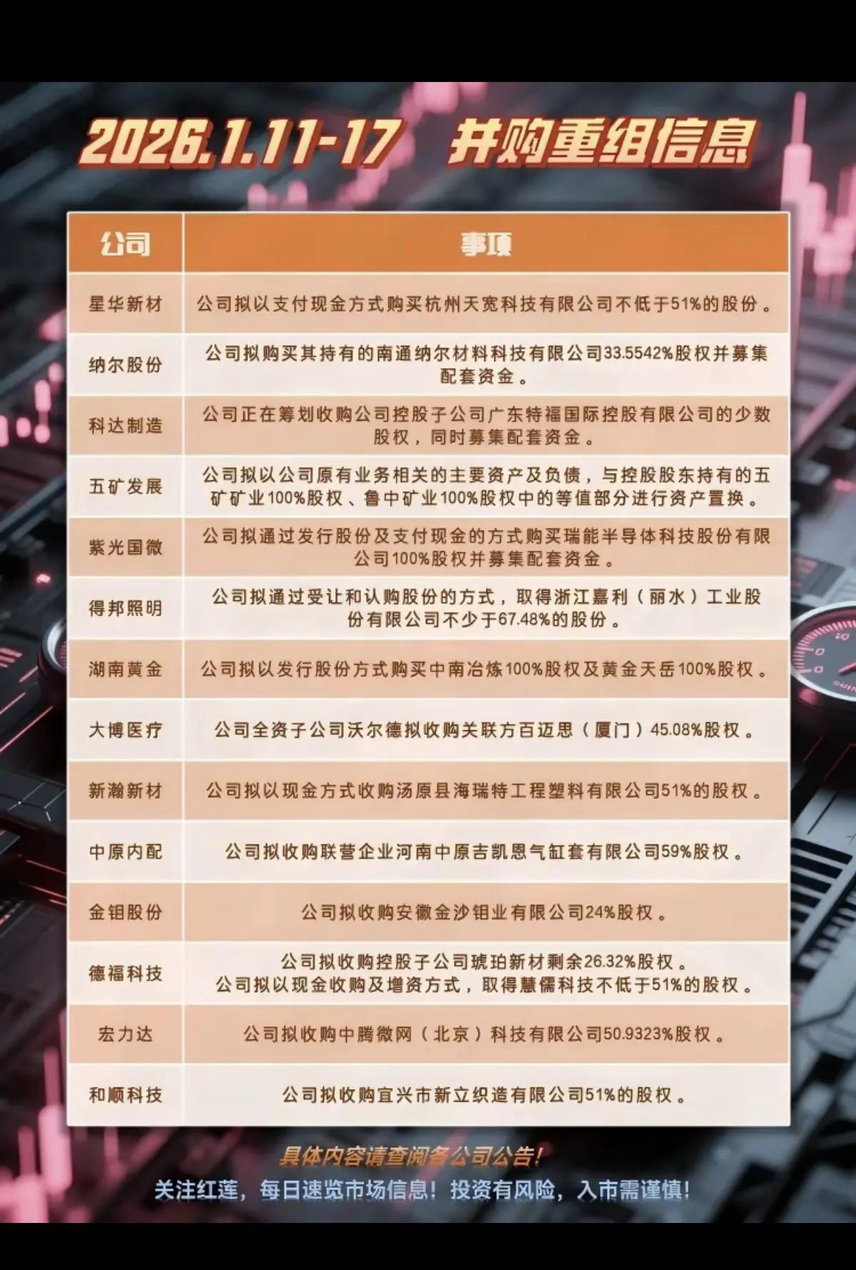 1月18日,下周A股这些股票有望大涨!!! 20家公司公布并购重组信息,重点关注:纳尔股份拟购买其持有的南通纳尔材料科技有限公司33.5542%股权并募集资金,后市值得高看一眼;大博医疗全资子公司沃尔德收购关联方百迈思45.08股权!!!