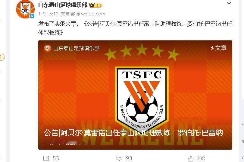 “教练席,到底该听‘人情’还是‘科学’?”🤔山东泰山官宣莫雷诺、巴雷纳加盟,中