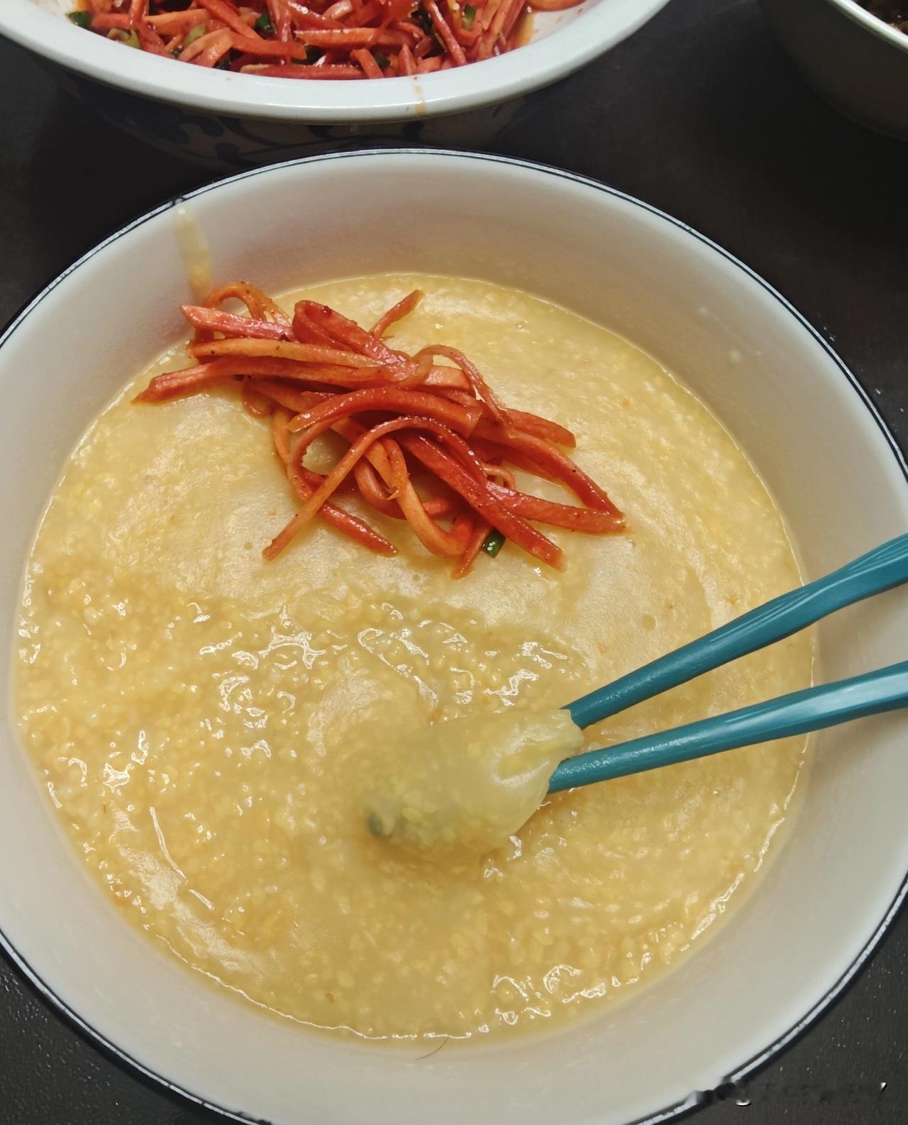 今天周日不用上班,我花了些时间熬了一碗包谷榛子,还加了一个红薯进去,另外弄了一碟酸菜和红萝卜丝。这便是小时候西北农村人每日早餐的标配。如今,只要一有空闲,尤其在冬日,我就特别想来上一口玉米榛子。
