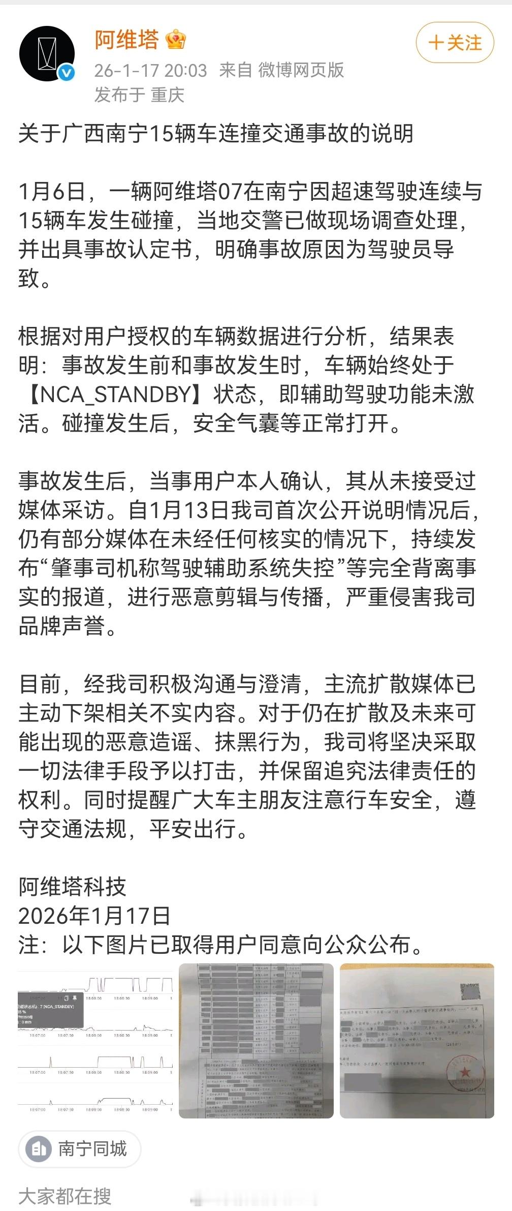 阿维塔连撞15车这事儿官方发声明了,处于非智驾状态。这个就是有些人瞎带节奏,用过