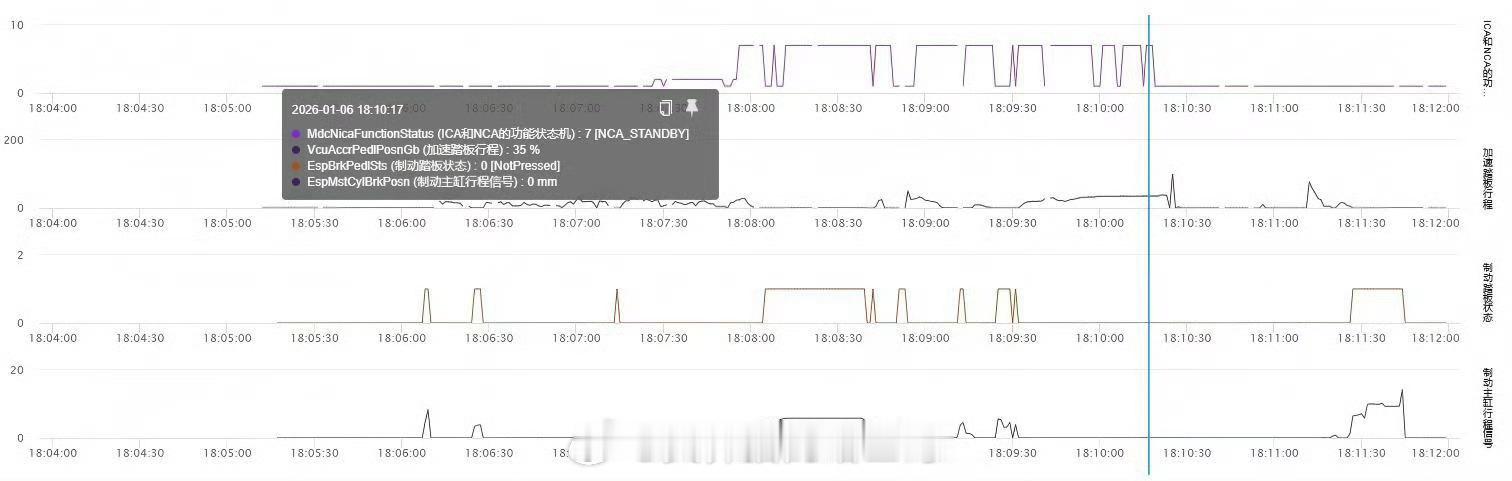 阿维塔连撞15车这事儿官方发声明了,处于非智驾状态。这个就是有些人瞎带节奏,用过ADS的都知道城区智驾根本开不了那个速度。从加速踏板行程这个数据能看出来踩了两次加速踏板,应该还踩到底了。