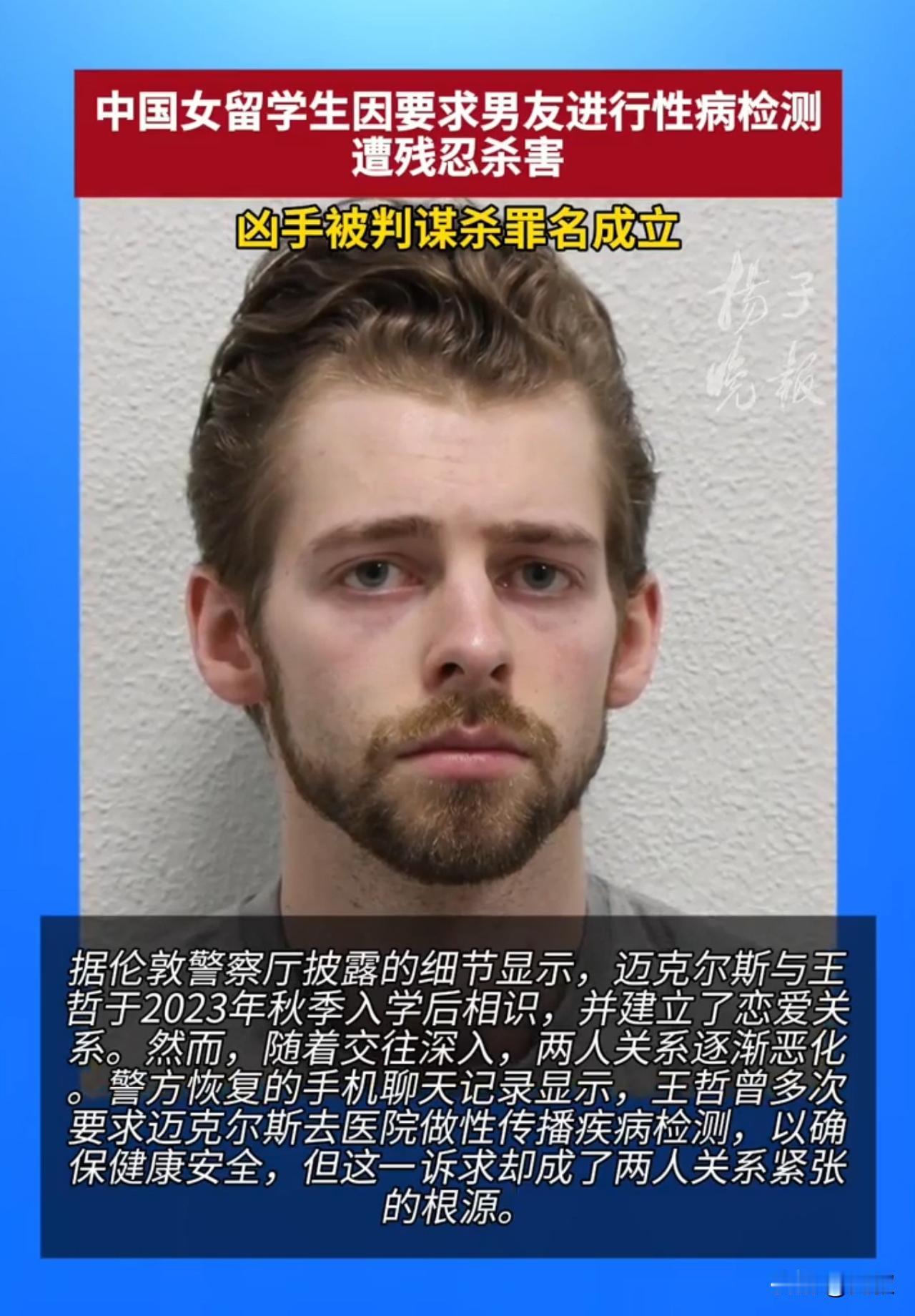 一个31岁的中国女留学生,刚到英国三天,时差都还没倒过来,就和人发生了关系,连基本的防护措施都没做。一周后查出性病,对方轻飘飘一句“just for fun”——就是玩玩而已。姑娘当场就懵了,后来她让那个男的去做检查,换来的不是道歉或解释,而是几刀子。男的被捕后还说自己是自卫,“只是想让她离远一点”。 2023年秋天。伦敦大学金史密斯学院,新学期刚开学,31岁的中国硕士生王喆,遇到了26岁的美国同学乔舒亚。异国他乡,年龄相仿,课程交集,恋爱关系就这么开始了。 在旁人看来,这不过是校园里又一桩普通的异国恋情,甚至带点邂逅的浪漫。可这段关系从一开始就有点“不对等”——王喆刚踏足一个全新国度,语言、文化、社交圈都处于最脆弱、最需要依附的阶段;而乔舒亚,则是更熟悉西方环境、更游刃有余的那一方。 然后就是那个要命的误会。亲密行为后,王喆发现自己身上起了红点。她慌了,第一个念头就是可能感染了性病。她开始反复要求乔舒亚去做检查。从担忧到焦虑,从请求到催促,手机信息成了单方面的施压。 现在看来,这些红点很可能只是个误会,庭审证据表明乔舒亚并未染病。但当时,这个基于健康恐惧的、合理的诉求,在对方眼里变成了什么?是纠缠,是指控,是没完没了的麻烦。 乔舒亚的反应很冷淡,甚至是不耐烦。那种态度,大概就像甩下一句“就是玩玩而已”时一样,带着事不关己的疏离。他或许真觉得这只是个无谓的纠缠。 可对王喆来说,这关乎身体,关乎尊严,关乎在这段关系里自己是否被尊重。她的坚持,撞上了他的漠然,矛盾像雪球一样滚大。 压垮骆驼的最后一根稻草,是2024年3月20号晚上那次面谈。王喆把见面地点定在了自己位于伦敦路厄斯罕的公寓。 这是个关键选择。私人、封闭、无第三者在场——她把解决矛盾的场所,选在了自己理论上最安全、实则最无援的“主场”。晚上7点17分,乔舒亚发消息说“到了”,然后上楼。 接下来的四十分钟,房间里发生了什么,只有他们两人知道。但结果是确凿的:乔舒亚在约四十分钟后打车离开。而王喆,面部被刺两刀,颈部遭受持续性压迫,死在了自己的公寓里。 最令人心寒的是事后。乔舒亚没有叫救护车,也没有立即报警。他先给自己远在美国的父亲打了电话,在父亲帮助下咨询了律师,拖延了近四个小时后,才在当晚11点08分报警。 电话里,他语气模糊,只说发生了一起“严重事件”,并特意强调自己已不在现场。这种冷静到近乎冷酷的处置,和他后来在法庭上声称的“自卫”时那种“恐慌”,简直判若两人。 法庭上,他的辩护词试图编织一个可信的故事:王喆因性病问题情绪失控,持刀攻击,他只是在挣扎中“意外”让她受伤,那句“只是想让她离远一点”就是全部动机。 尽管听起来逻辑缜密,但警方证据撕开了这个口子:他住所里找到了带王喆血迹的衣服,他试图删除的手机信息也被技术恢复。陪审团看了所有证据,听了十六个半小时,最终裁定时,没信他那套。 案子判了,2025年12月8日,谋杀罪名成立。可我们复盘整件事,它真的只是一桩极端的、偶然的“遇人不淑”吗?我看不止。它更像多重因素绞合下的必然悲剧。 首先,是那种巨大的文化与环境落差。一个初来乍到的留学生,时差都没倒明白,身心都处于悬浮状态。她急于抓住一点确定性和连接,却可能误判了环境的复杂与人心的深浅。那种孤独感,有时候会降低人的防备,也会让人在关系中更易妥协。 其次,是健康沟通的彻底失效。性健康本该是亲密关系中最基础、最该坦诚沟通的部分。但在本案中,它成了猜疑和羞辱的来源。要求伴侣进行检测,这本是正当且负责任的行为,却在对方那里被曲解为攻击和侮辱。 最核心的,还是那种隐性的权力不对等。从“就是玩玩而已”这句话里,你听不出半点对关系、对对方的尊重,只有一种居高临下的玩弄感。当弱势一方开始主张自己的权利、触碰对方的“麻烦”时,强势一方的反应不是协商,而是从冷漠升级到厌恶,最终可能滑向彻底的暴力清除——“让她离远一点”,物理意义上的。 说到这里,我想起庭审中的一个细节。探长形容凶手是“危险且暴力的个体”,袭击是“残忍且野蛮的”。而朋友们回忆王喆,是个文静、温柔,正努力享受留学时光的女孩。两个原本不该有深重交集的人,因为一段短暂的关系,走向了一个万劫不复的终点。 参考信息: 扬子晚报|《中国女留学生因要求男友进行性病检测遭残忍杀害,凶手被判谋杀罪名成立》 文|也无风雨也无晴 编辑|史叔