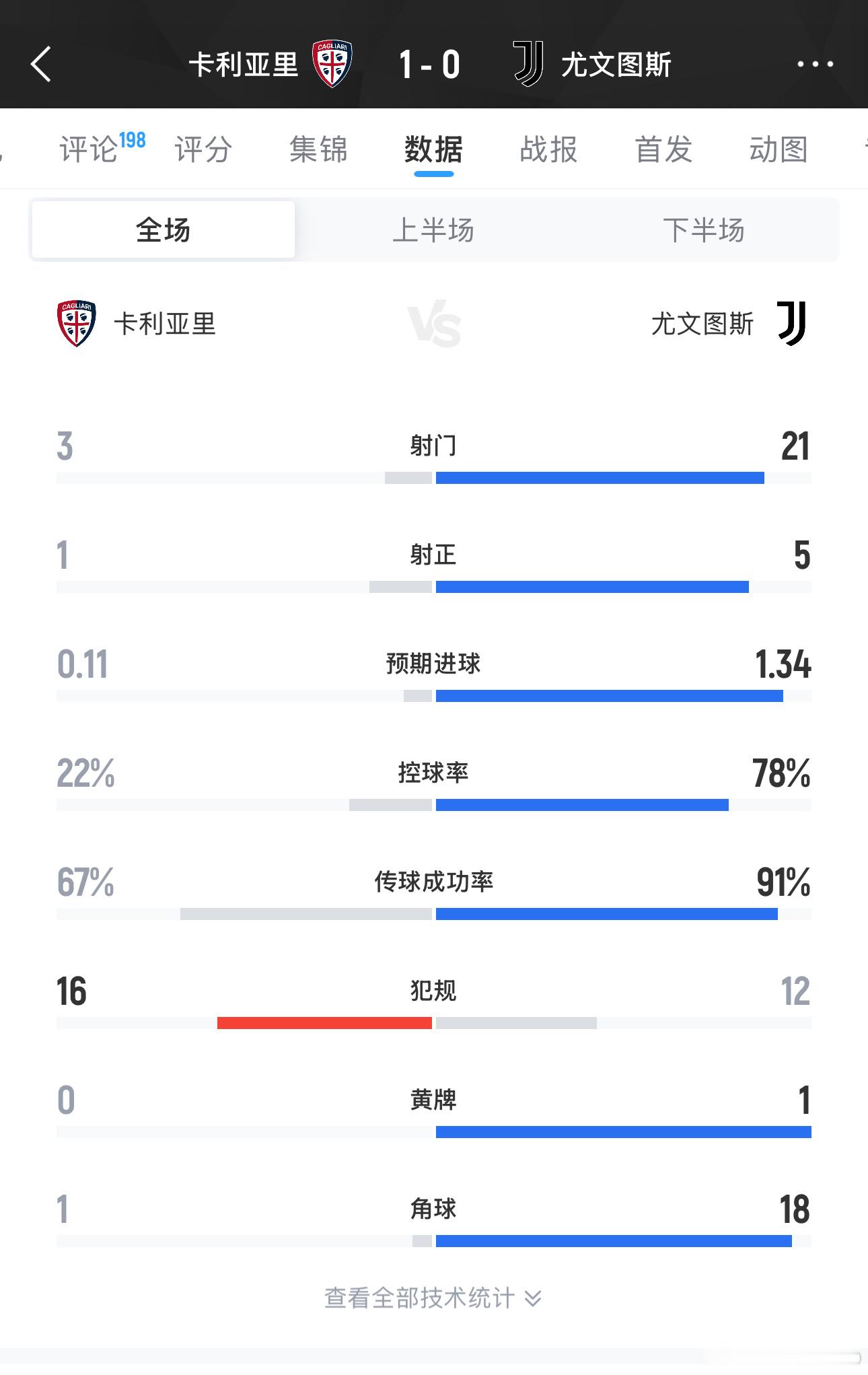 一觉醒来,你妇居然出系统局了,全场压制的情况下就是进不了球,卡利亚里一个定位球杀