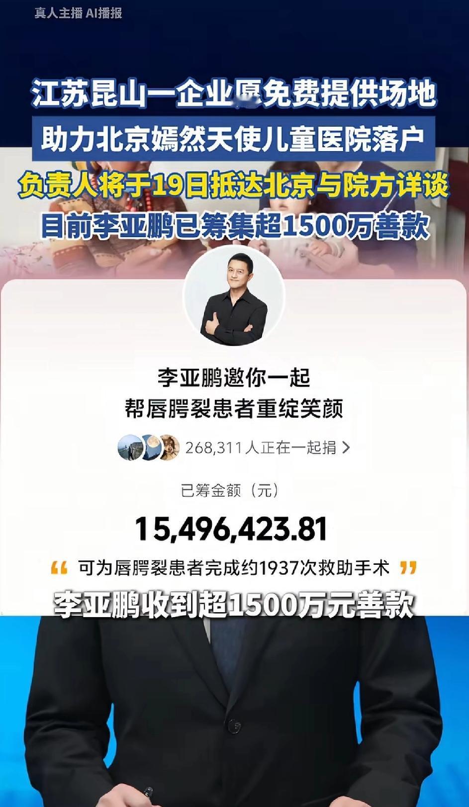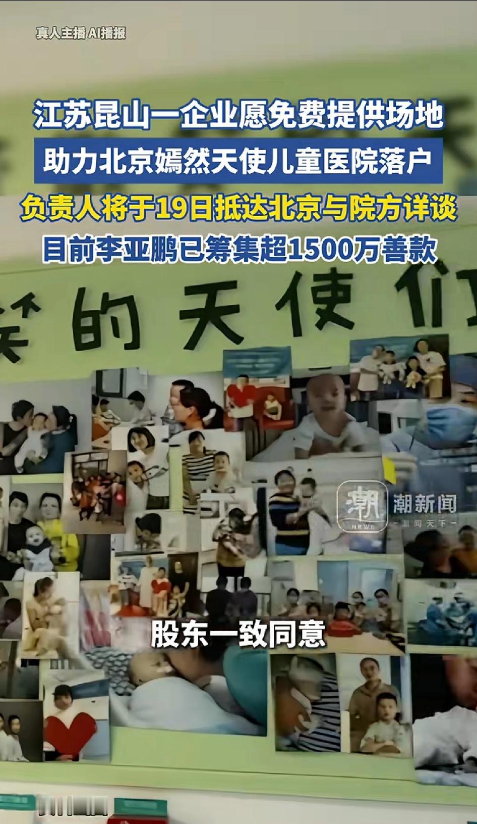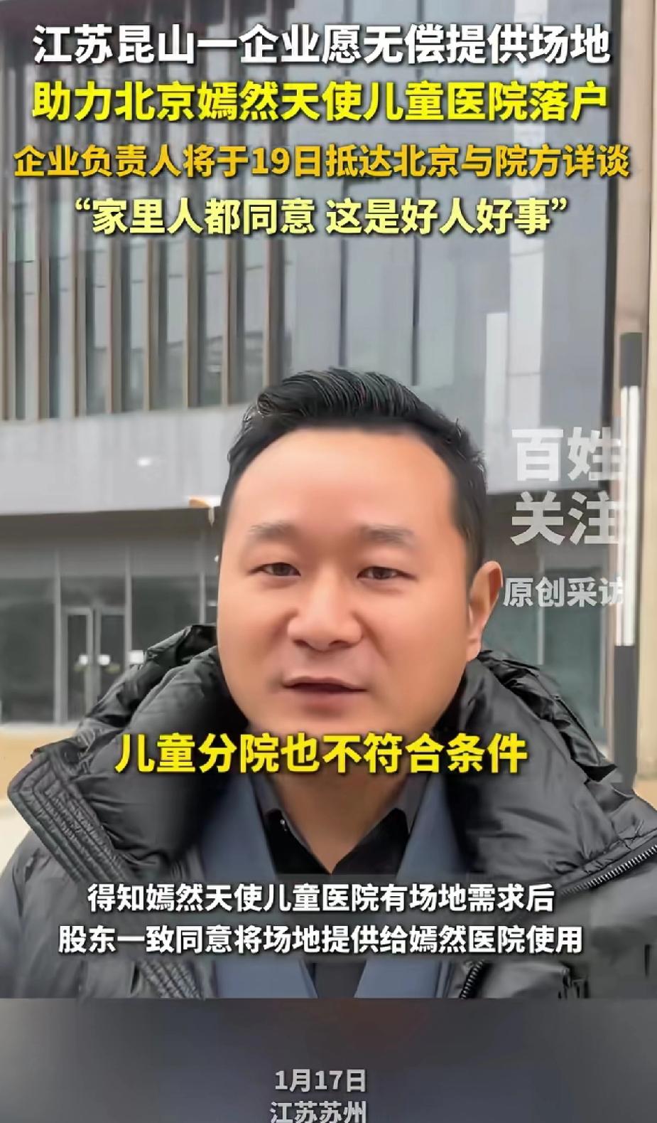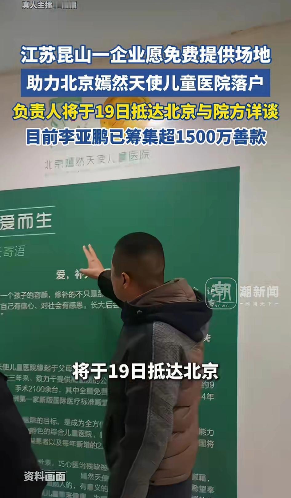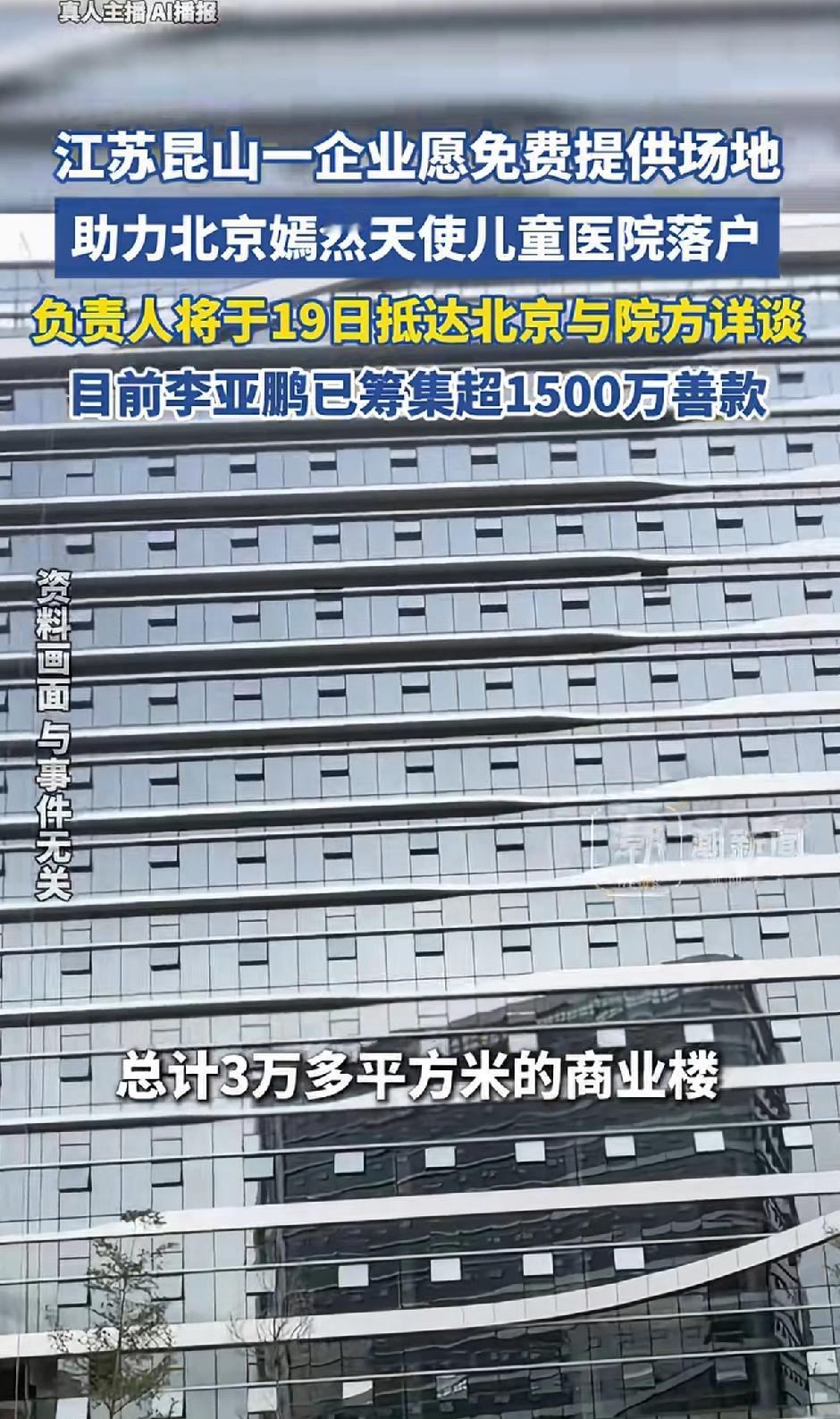 江苏昆山一企业愿意免费提供场地,助力北京嫣然天使儿童医院落户,负责人将于19日抵