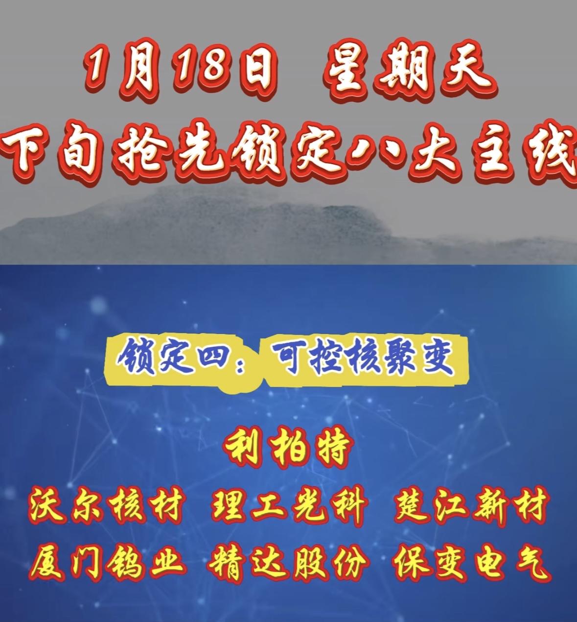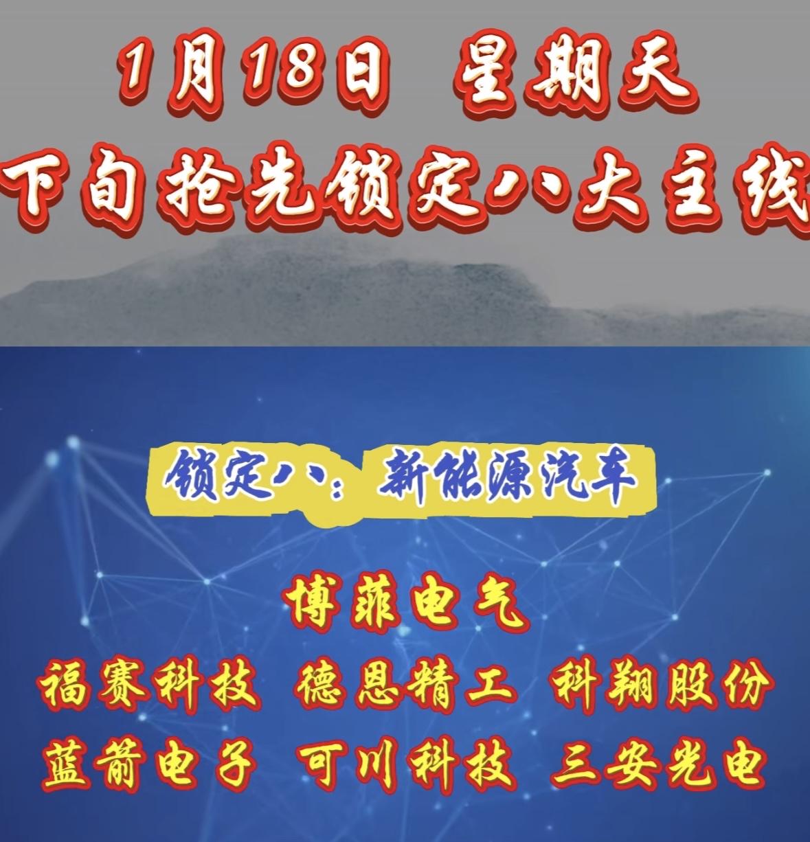 1月18日,星期天,抢先锁定八大新能源汽车主线!🚗🔋 "电网设备概念股引关注,广电电气、森源电气等受资金青睐,市场聚焦能源赛道新动向。" "电网设备概念股受关注,广电电气、森源电气等标的引市场抢先布局,行业热度攀升。"